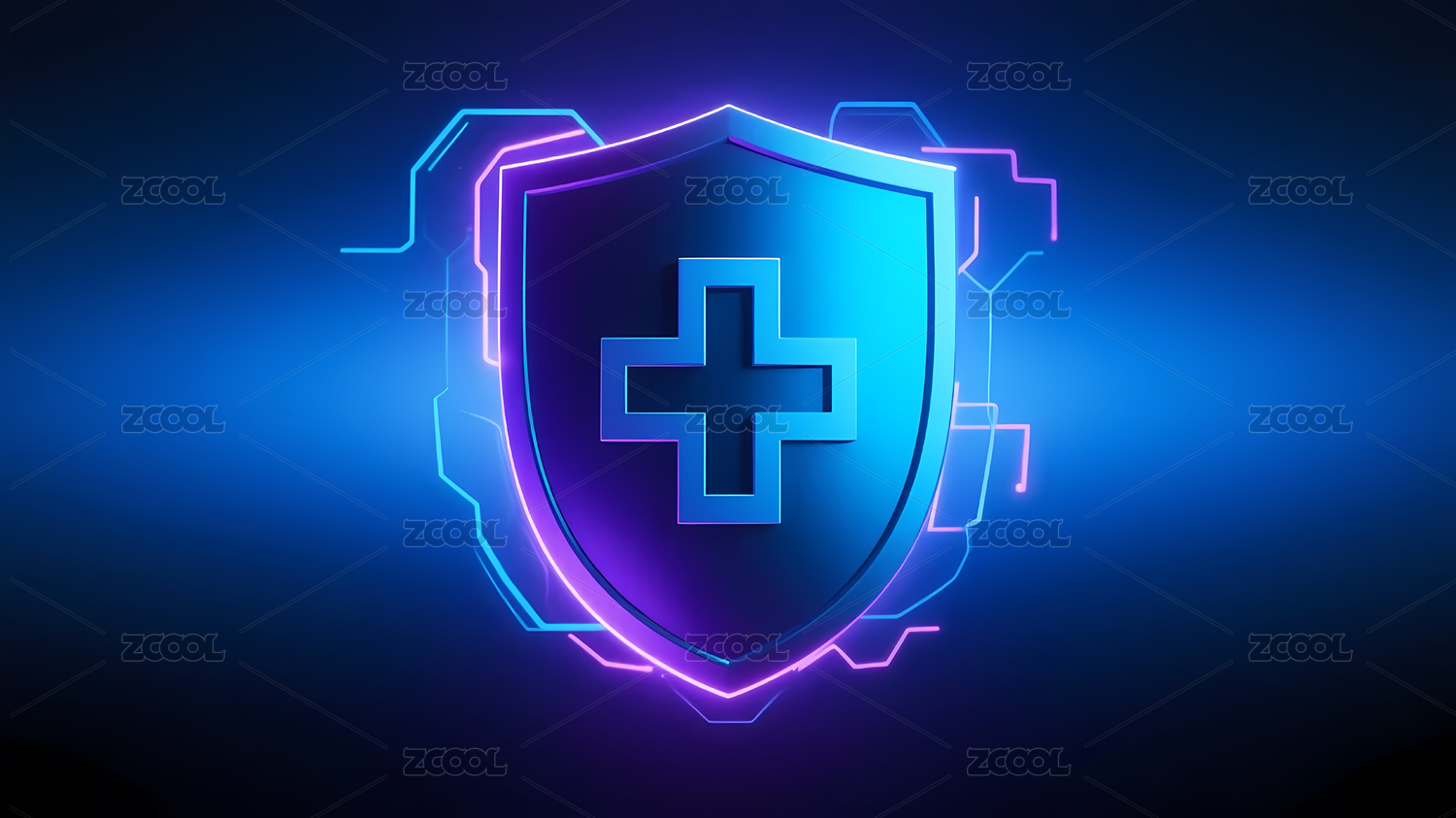 科技感盾牌加号防护图标