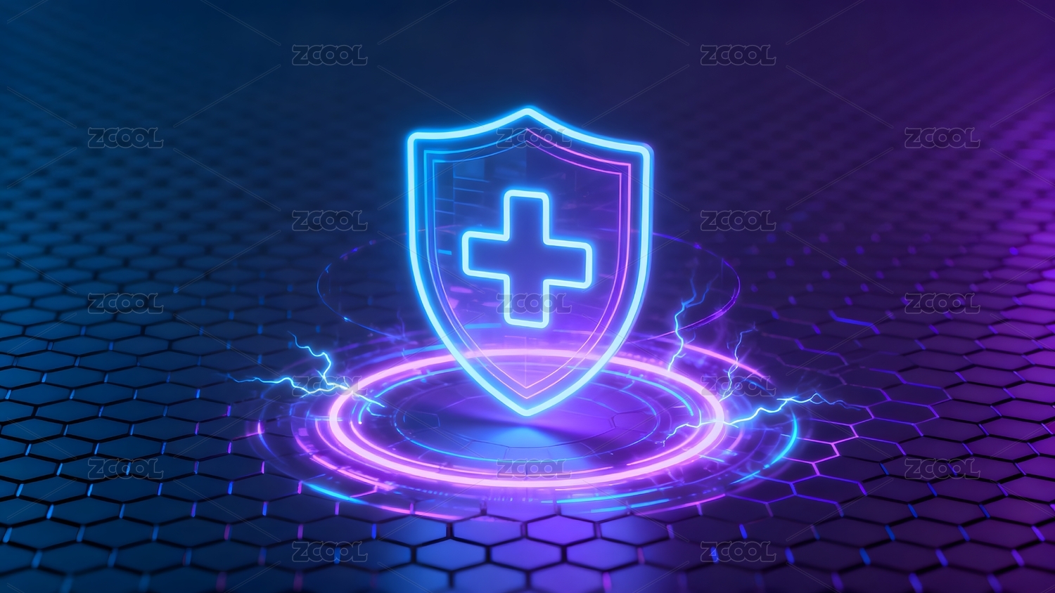 紫色背景盾牌图标科技感强