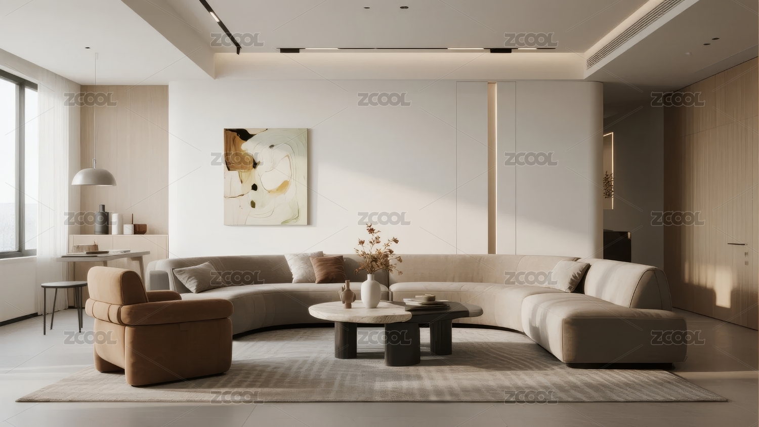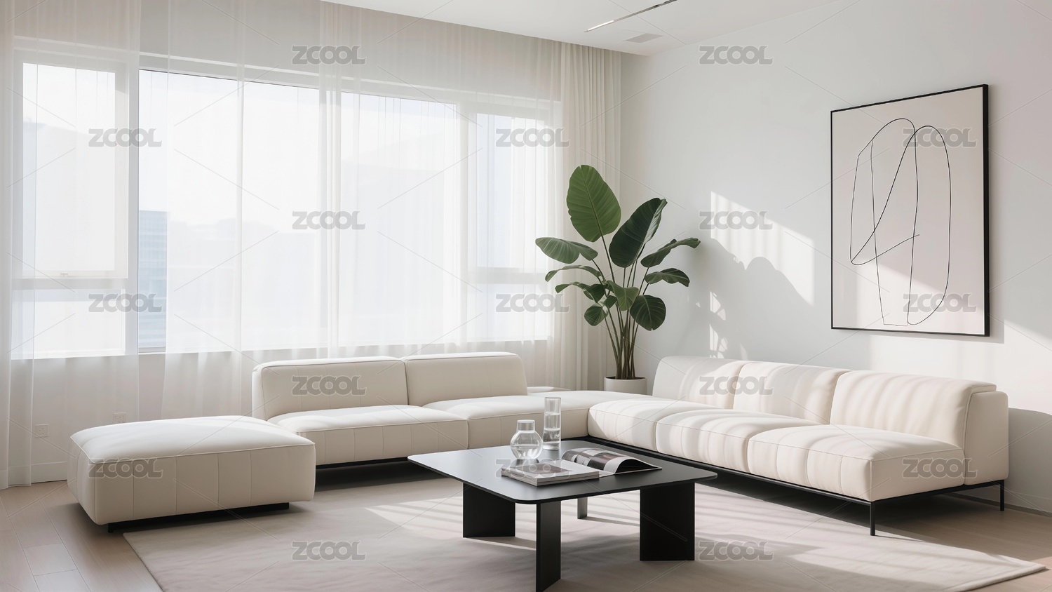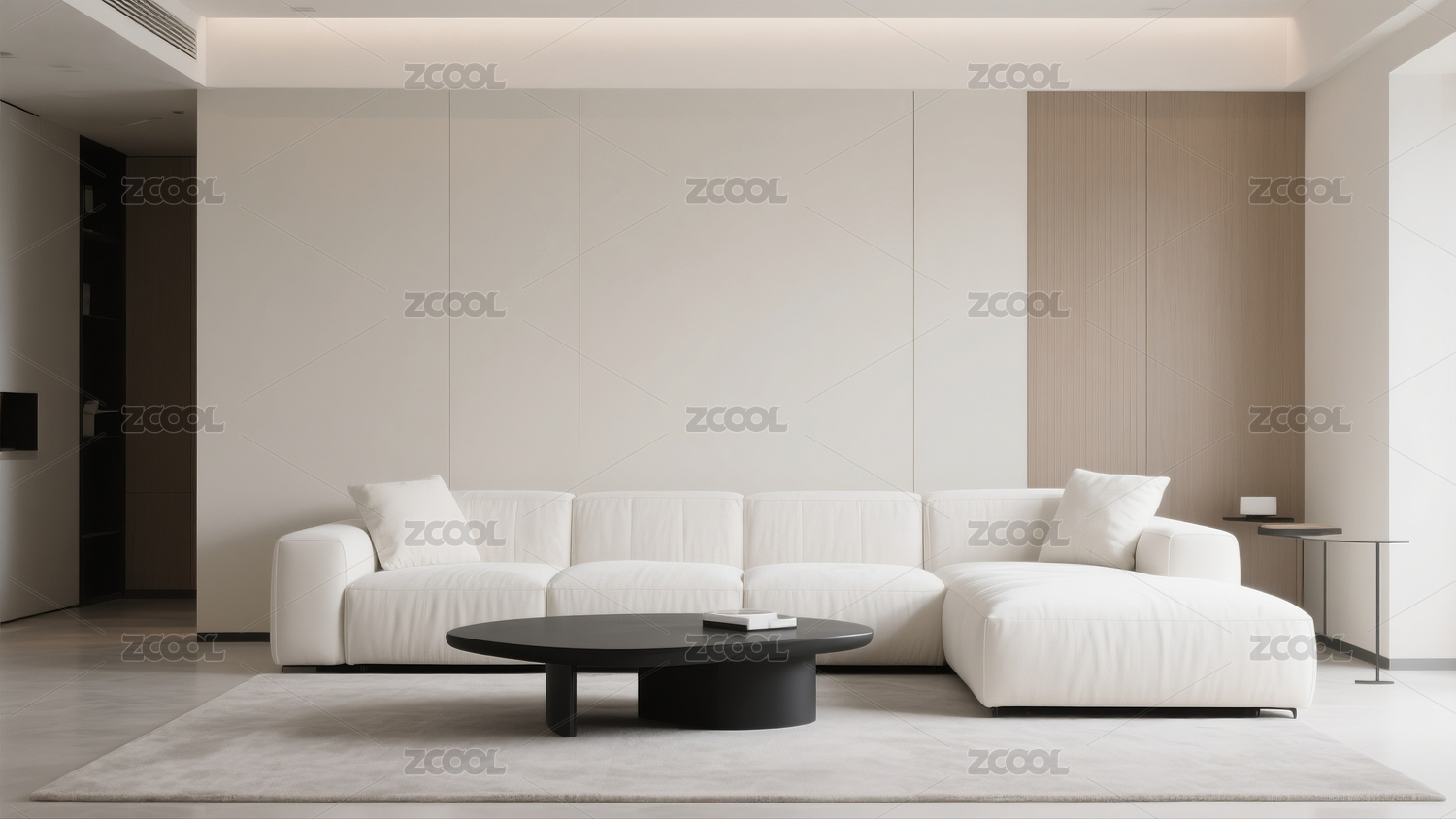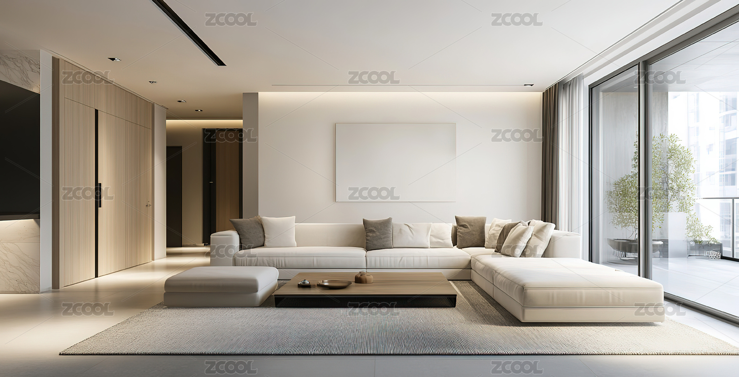 现代简约风格客厅设计白色储物柜与舒适沙发
