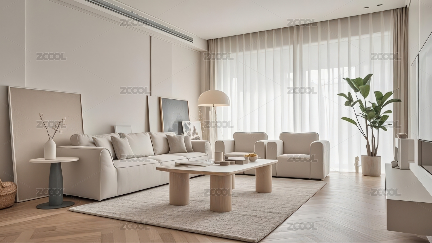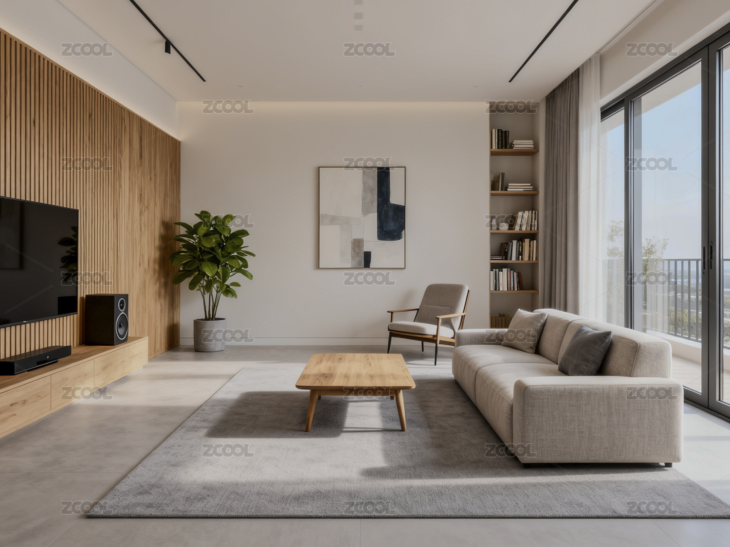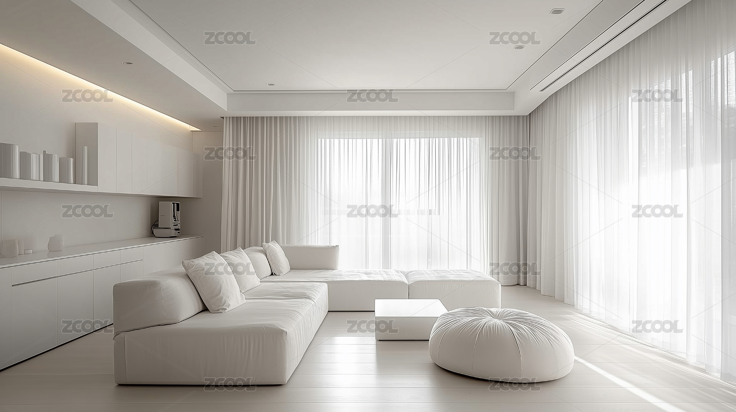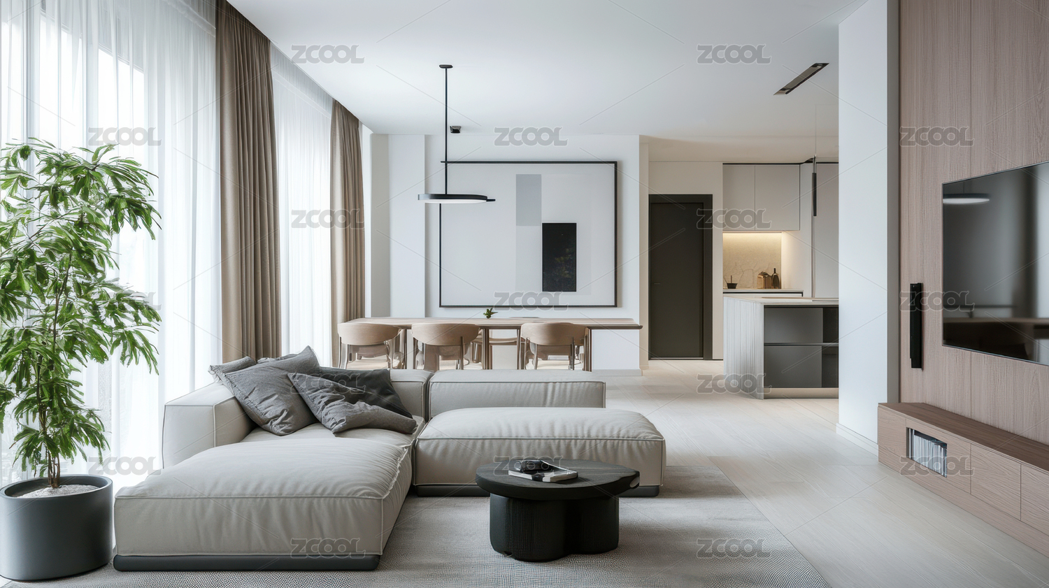 现代简约风格客厅设计白色储物柜与舒适沙发