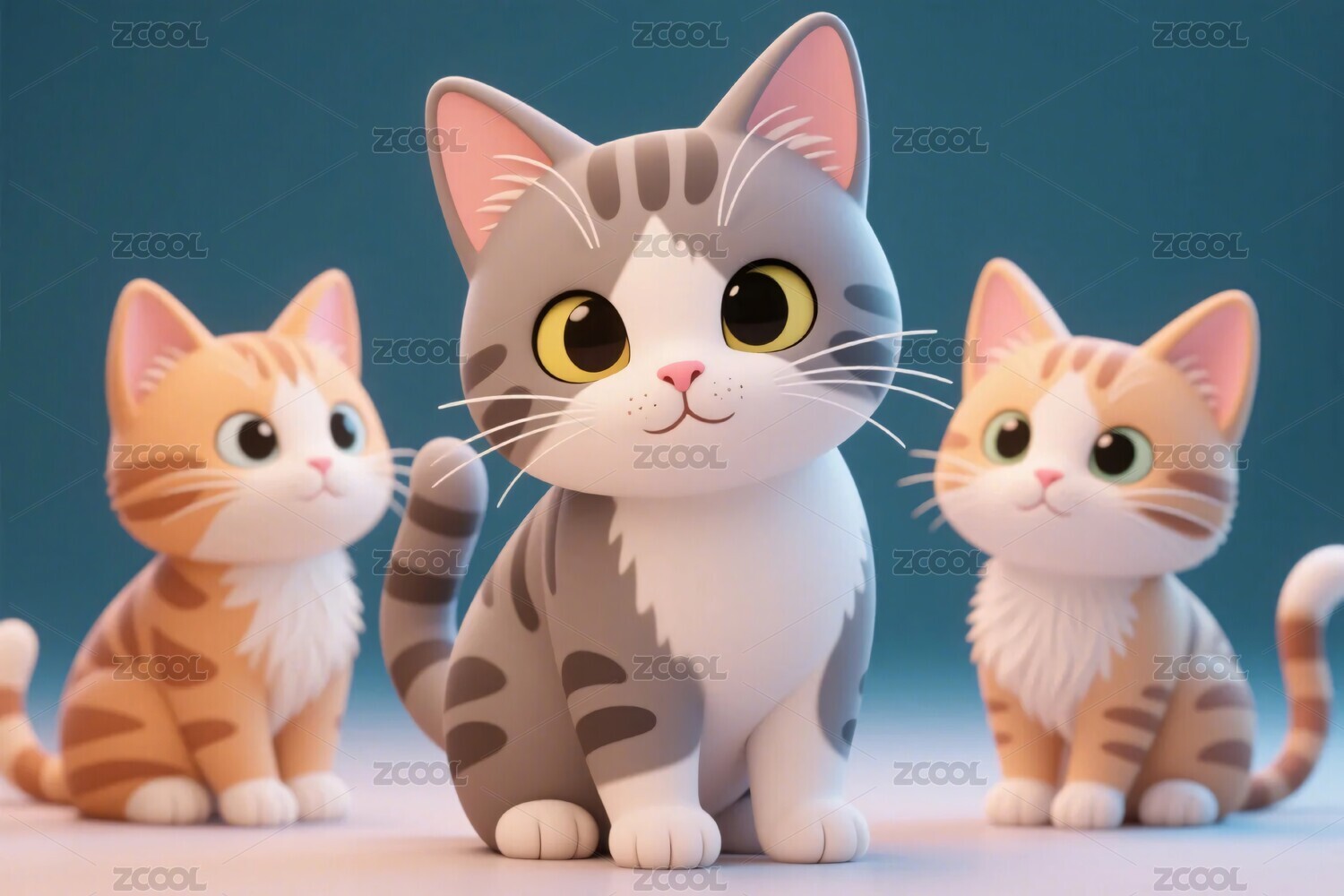 三只卡通猫咪浅色渐变