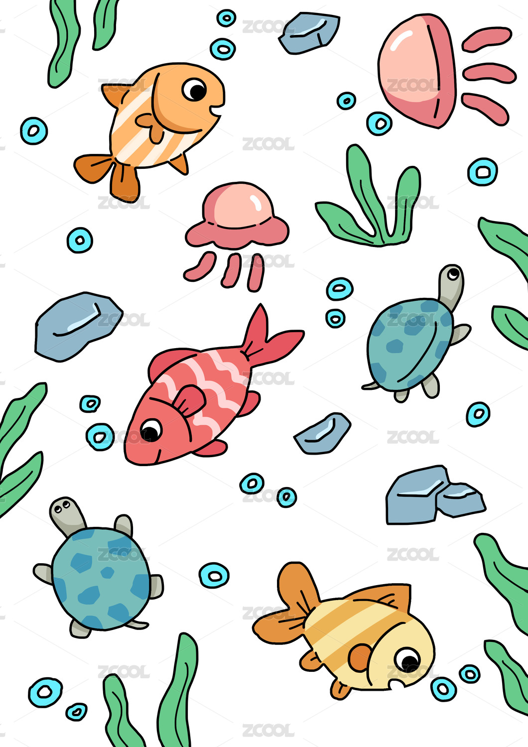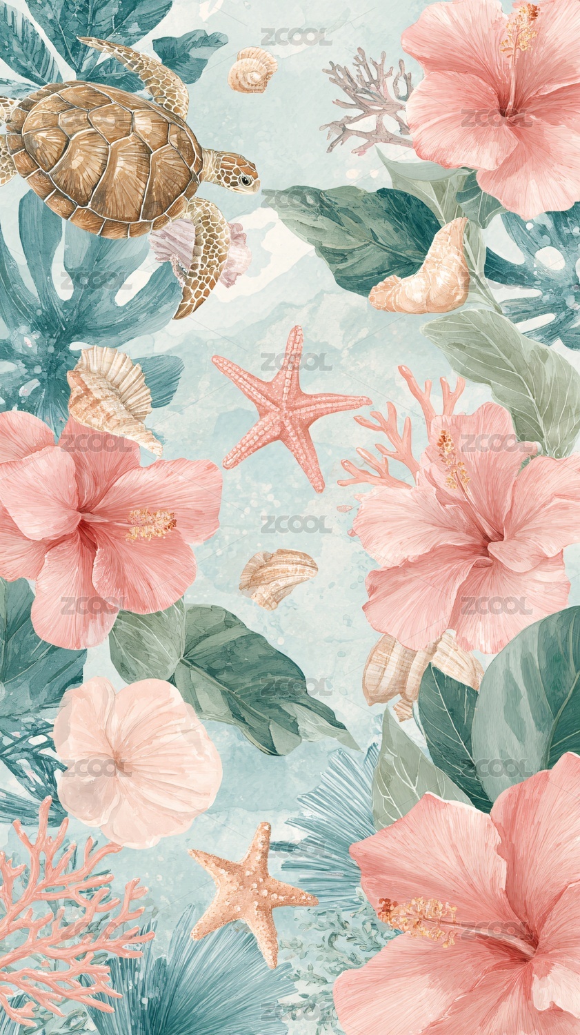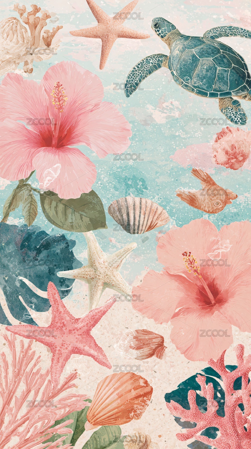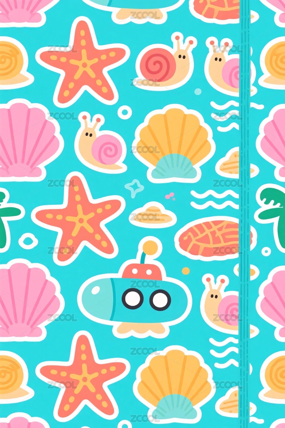 海洋,贝壳,海星,蜗牛,棕榈树,卡通,插画,图案,背景,可爱