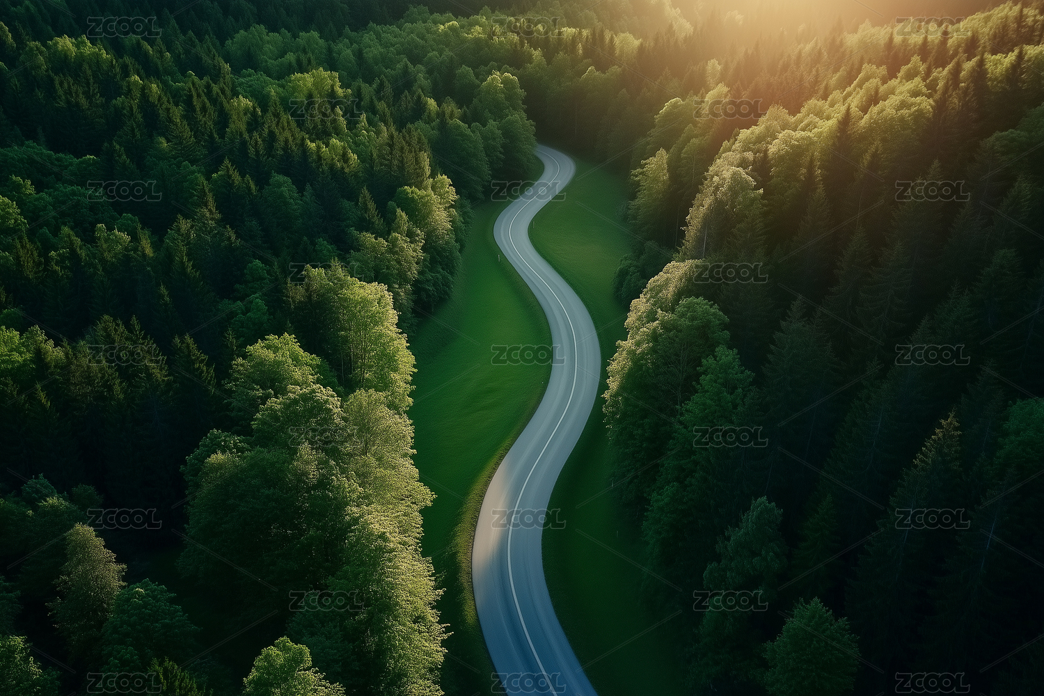 蜿蜒公路与茂密森林景象