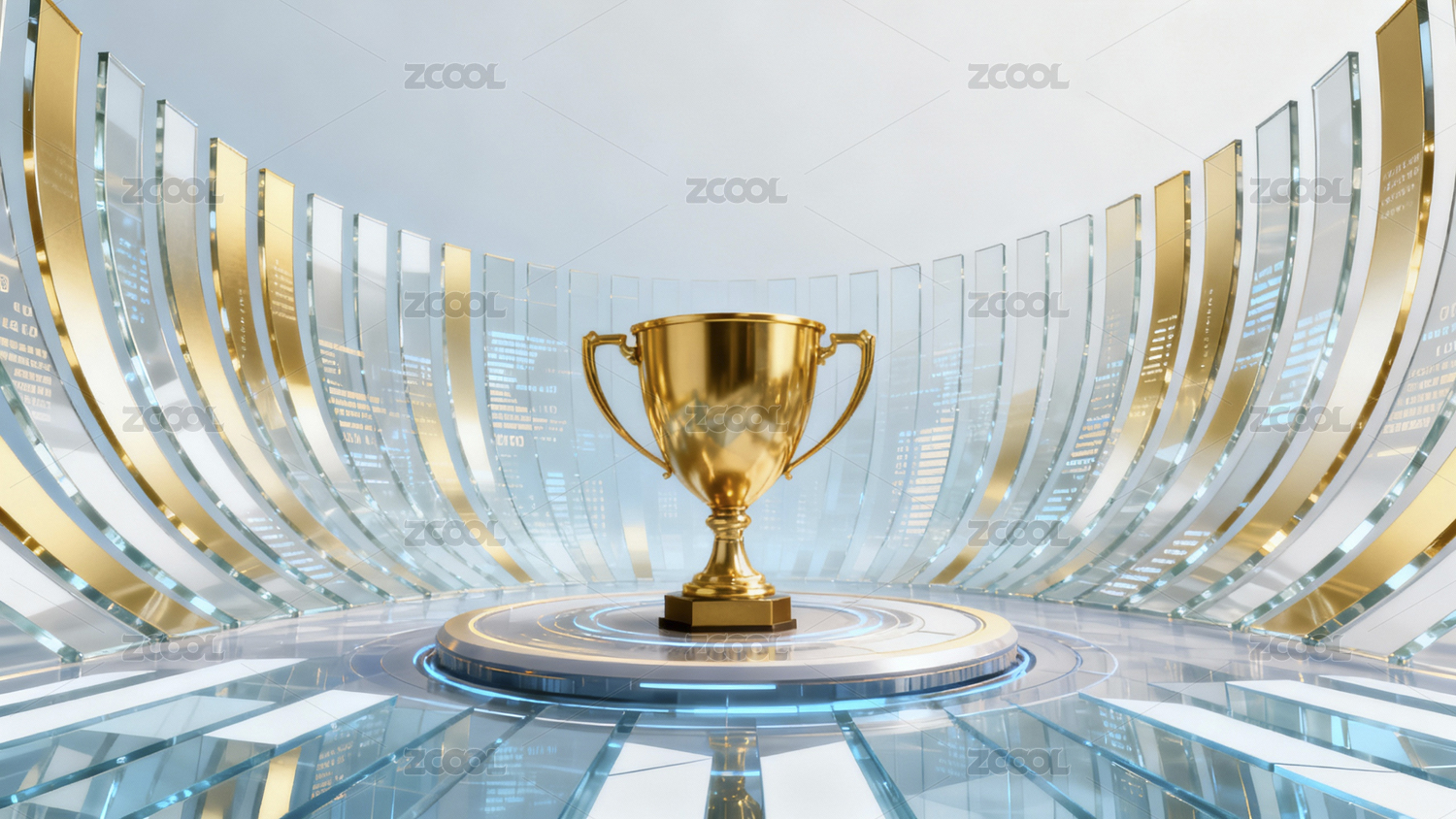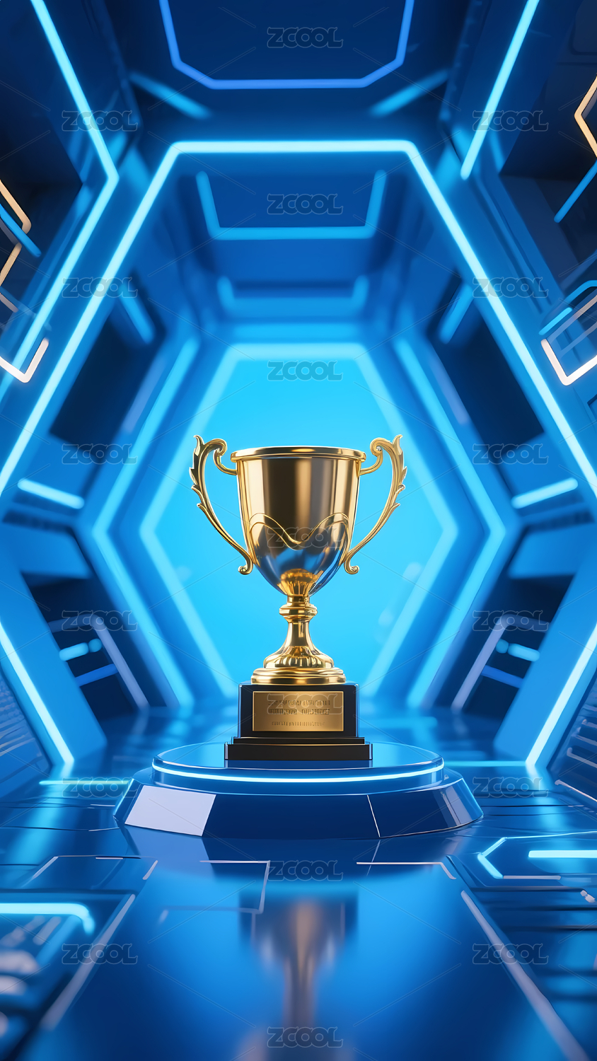 奖杯,荣誉,冠军,领奖台,蓝色,光影,颁奖,竞技,胜利,成功