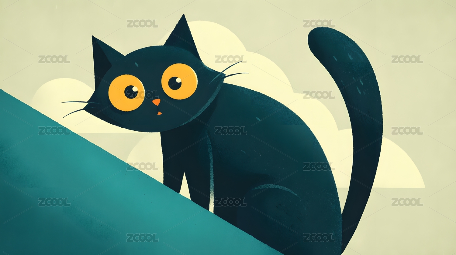 黑猫,卡通,水面,漂浮,可爱,童趣,小猫,动物,水波,绿叶