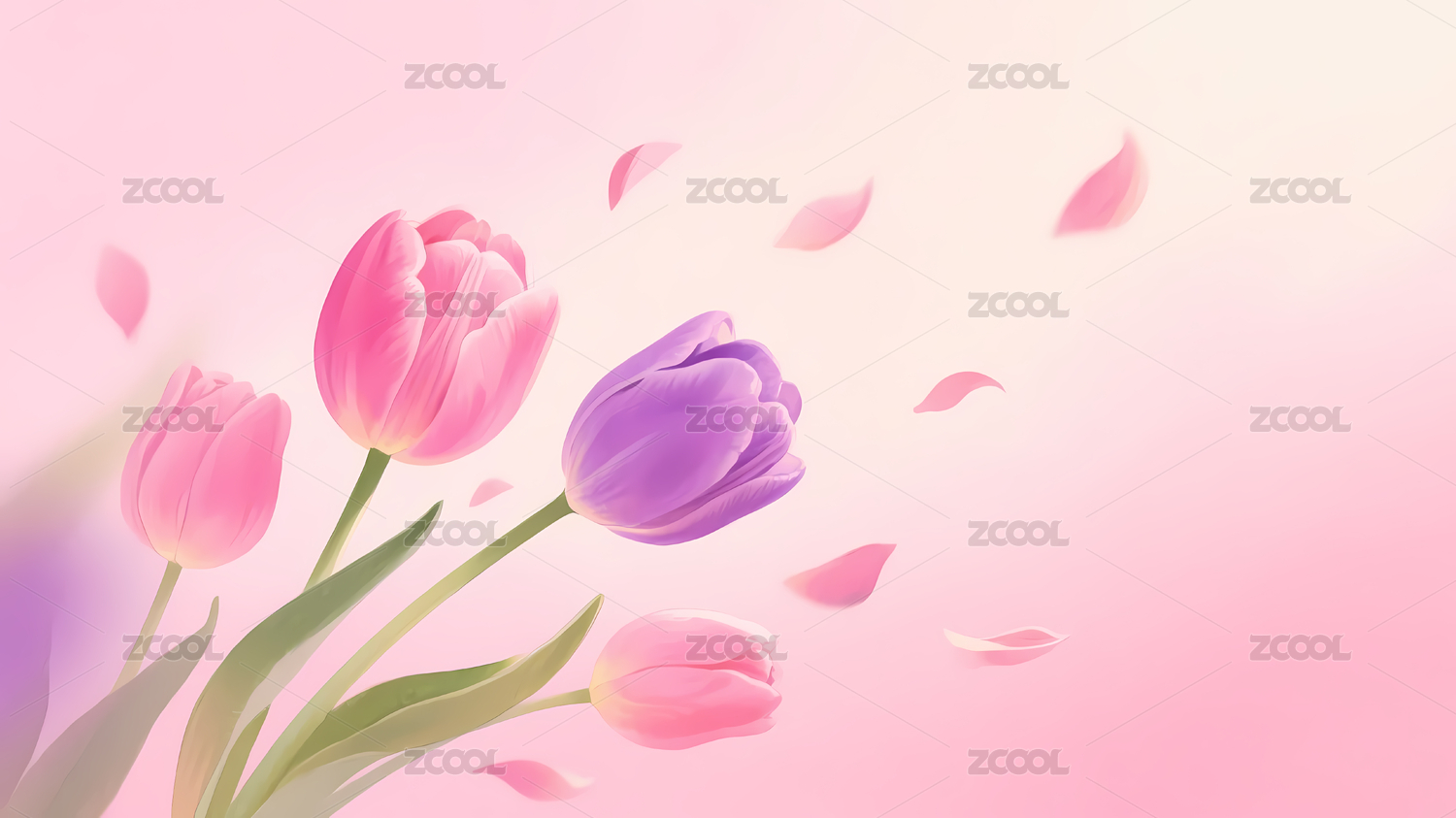 粉紫郁金香与柔和背景