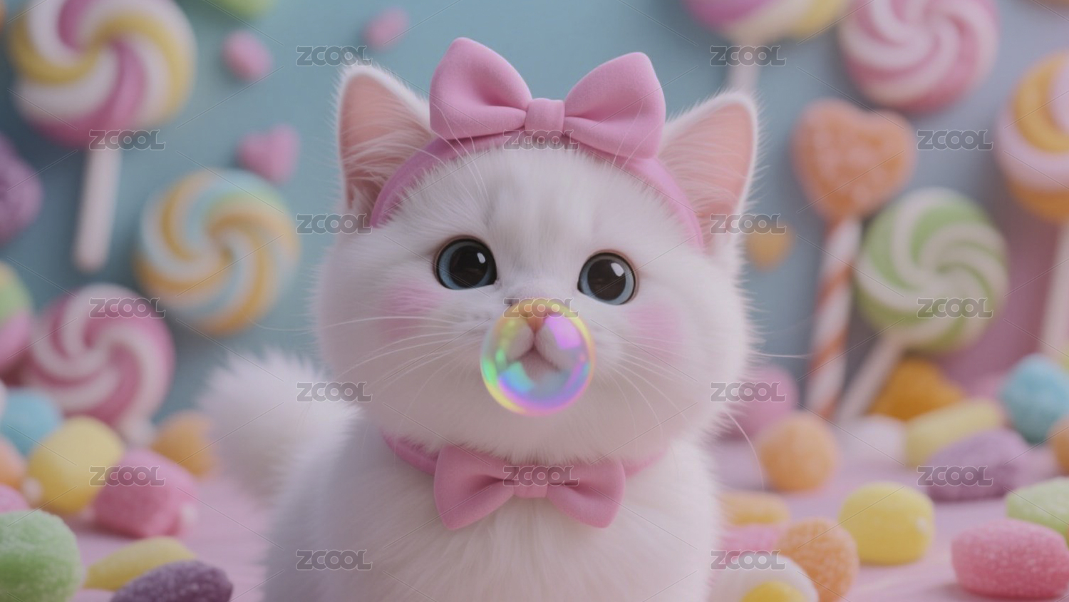 小猫,甜点,糖果,可爱,卡通,粉色,梦幻,甜美,蝴蝶结,甜甜圈