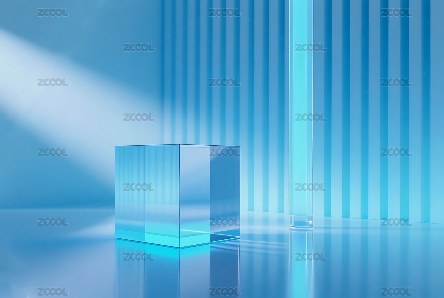 蓝色透明柱体的现代抽象场景