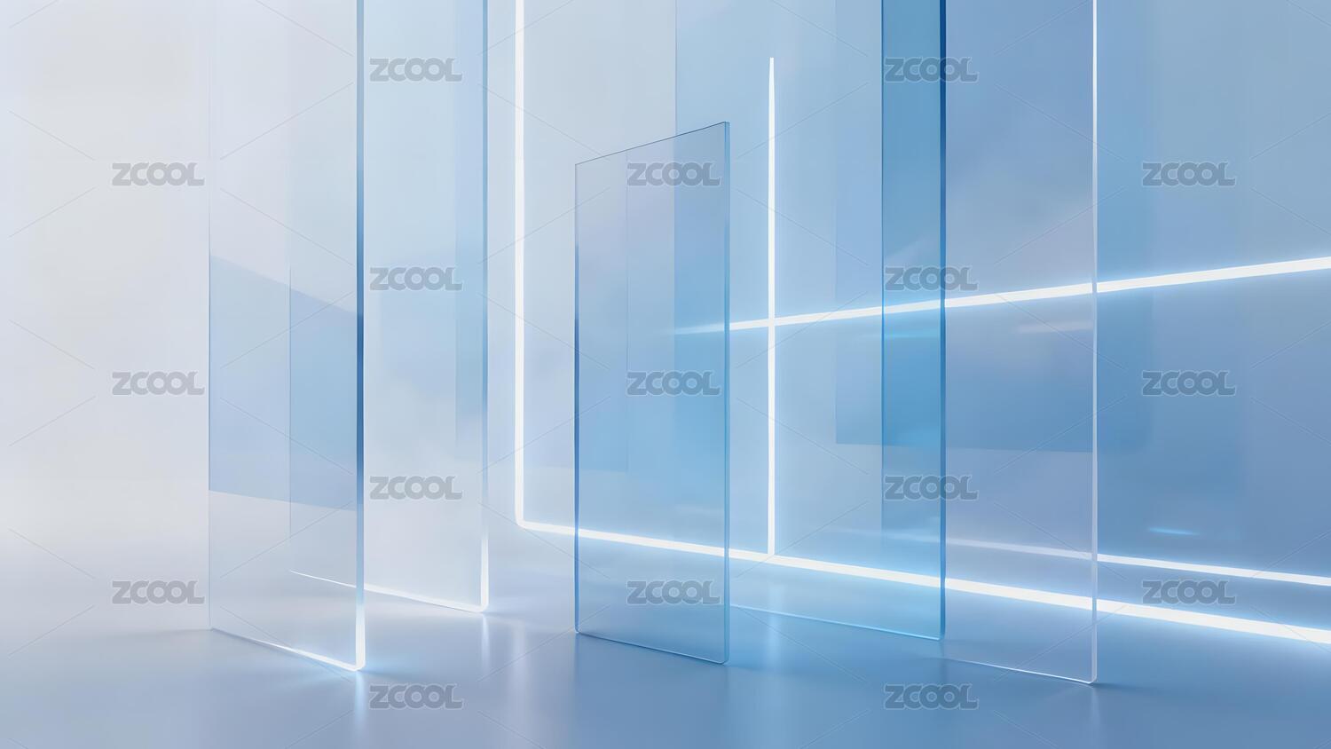 蓝色光影玻璃空间