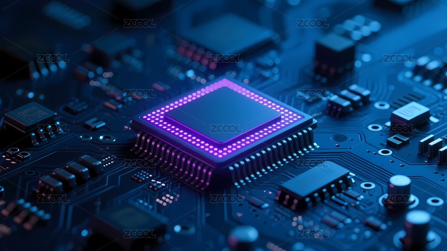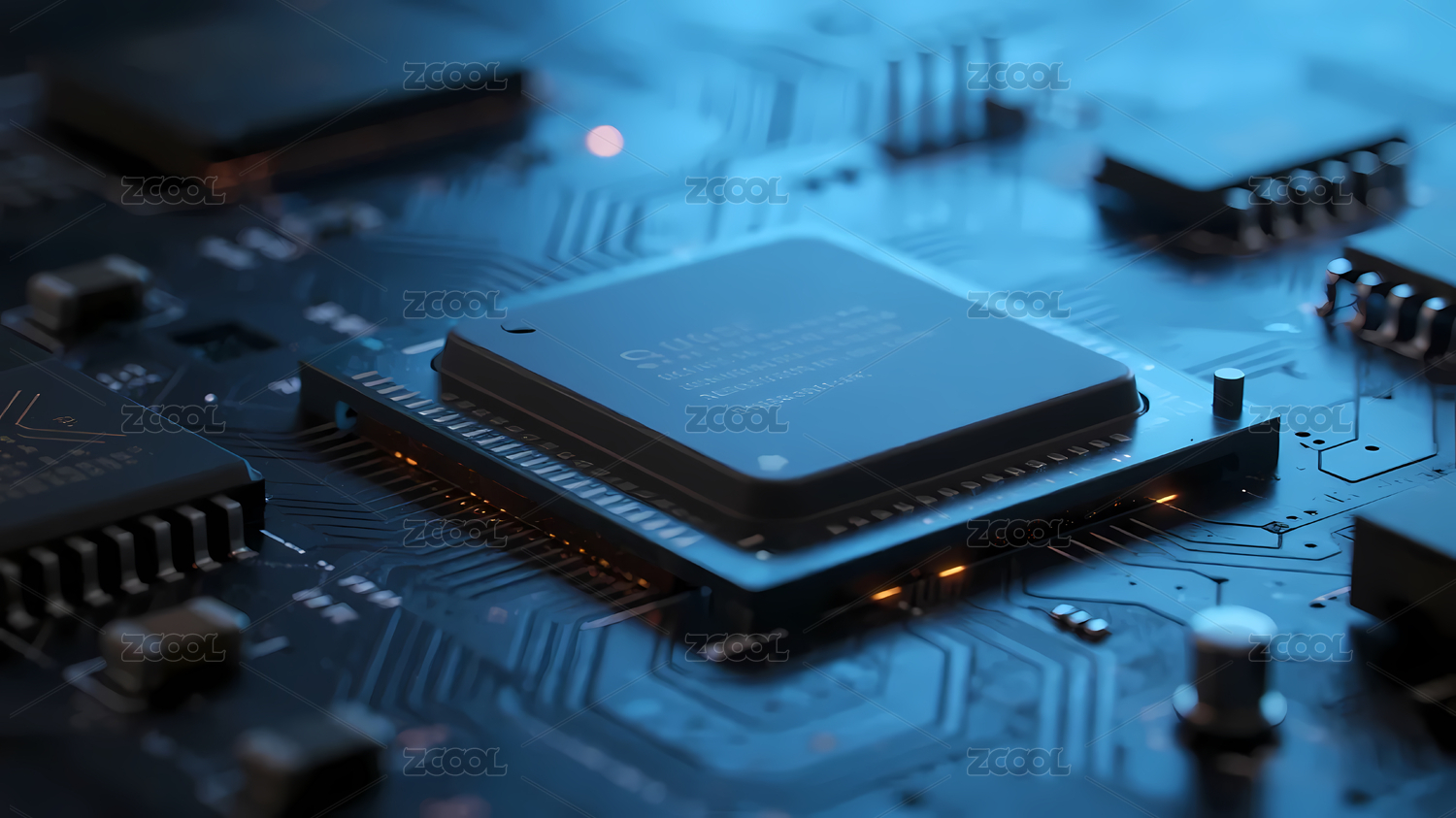 蓝色芯片深色电路板