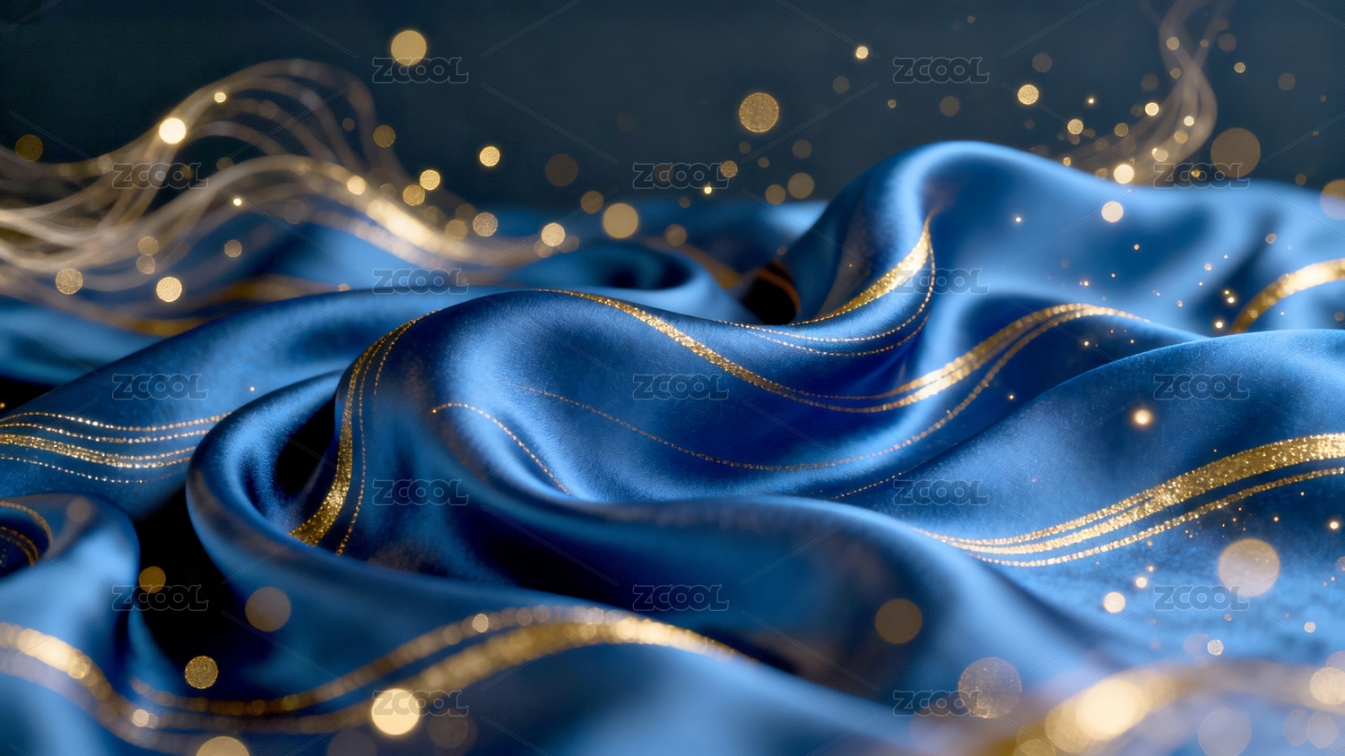 蓝色丝绸纹理与金色光点