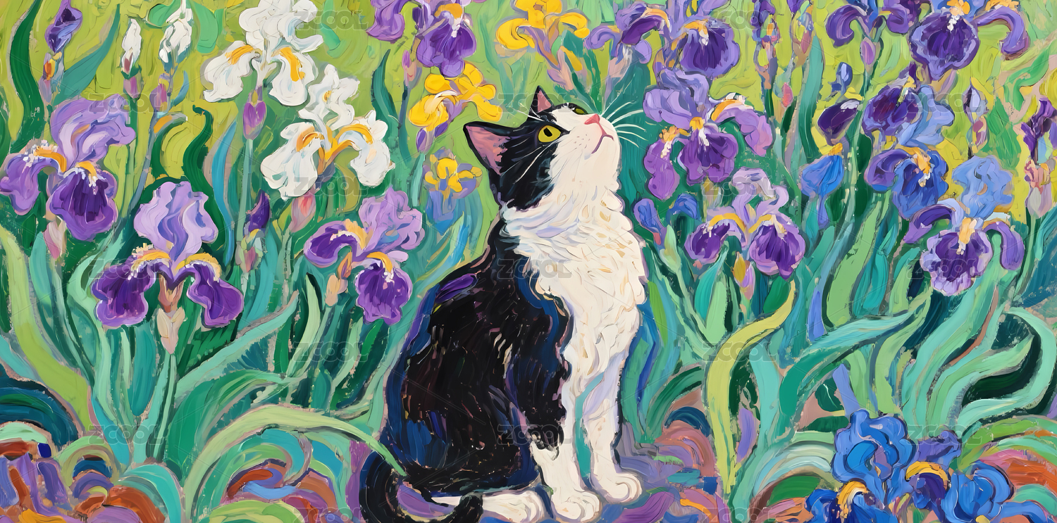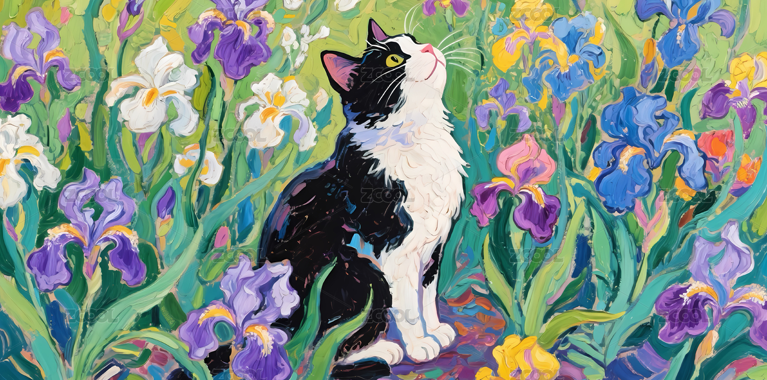 极繁主义繁花丛里酣睡的猫咪刺绣背景
