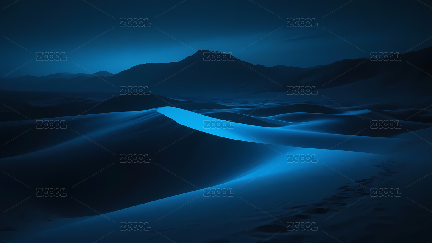 数码蓝银色沙漠山丘场景抽象图形海报背景