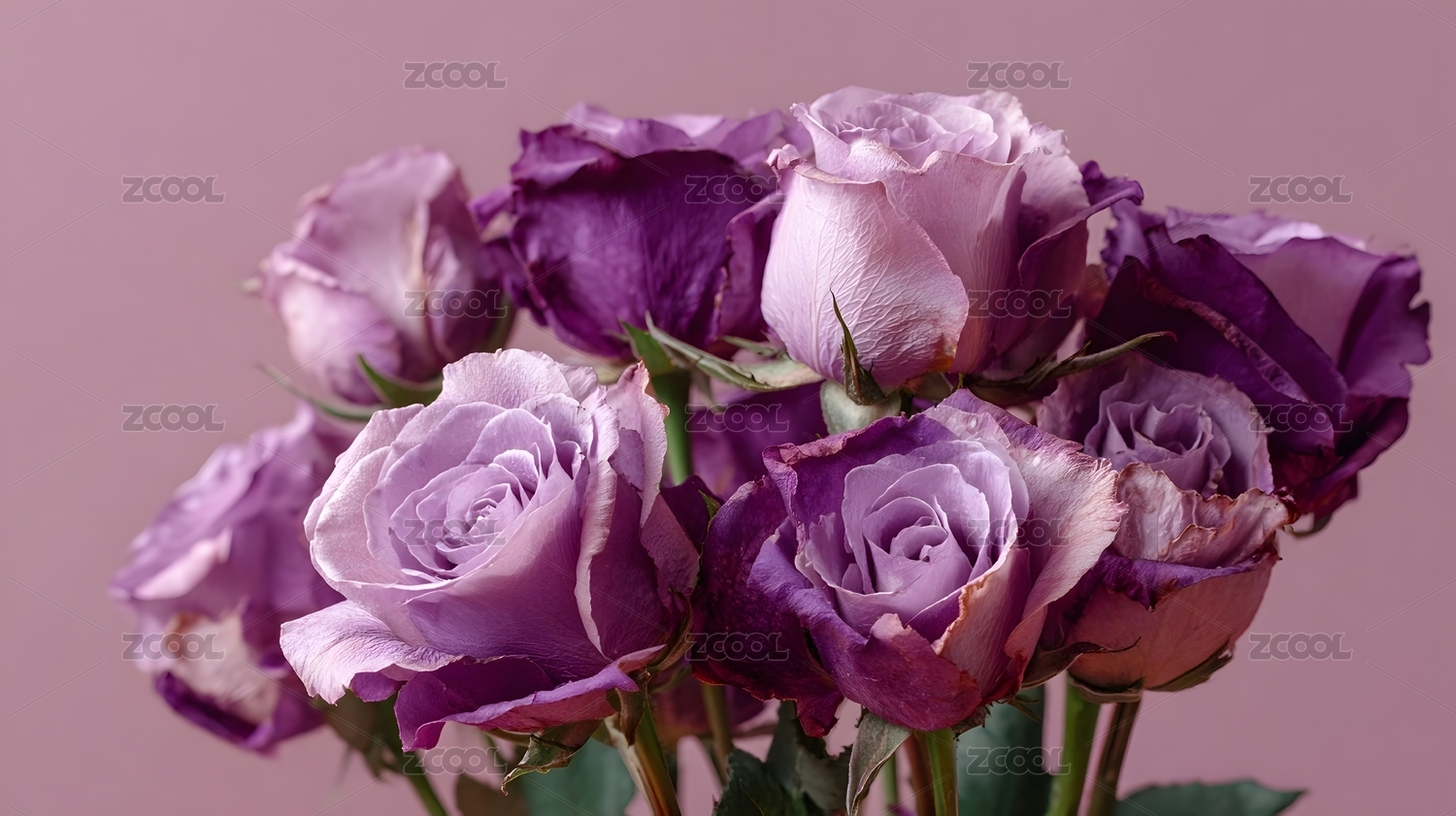 紫粉玫瑰花束特写