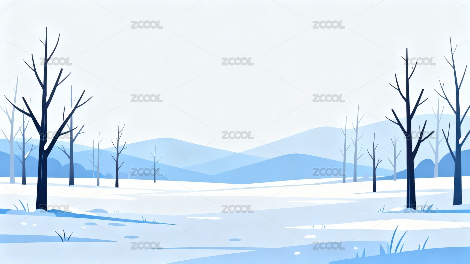 冬天雪景插画简约清新背景
