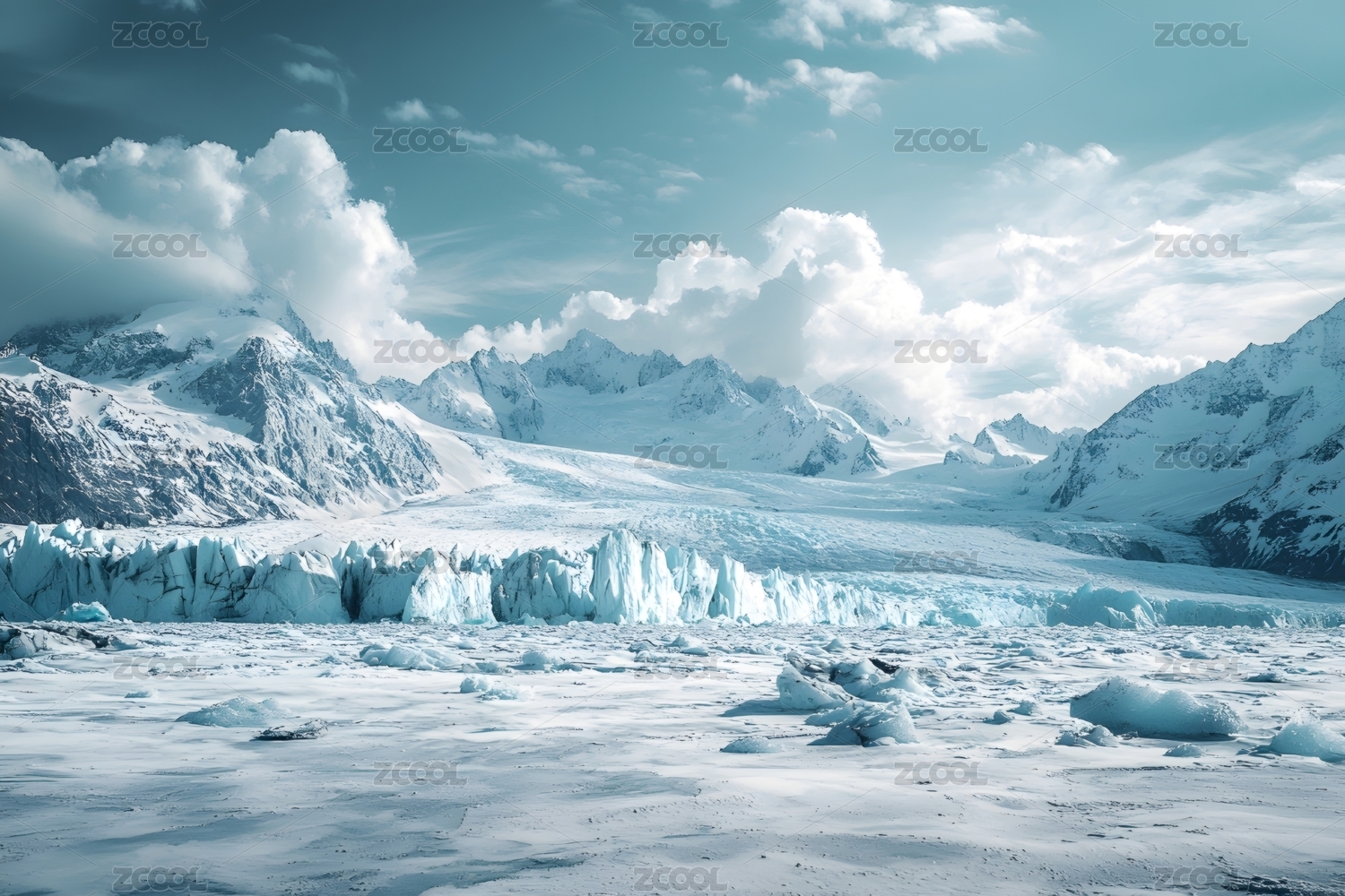壮丽雪山冰川全景
