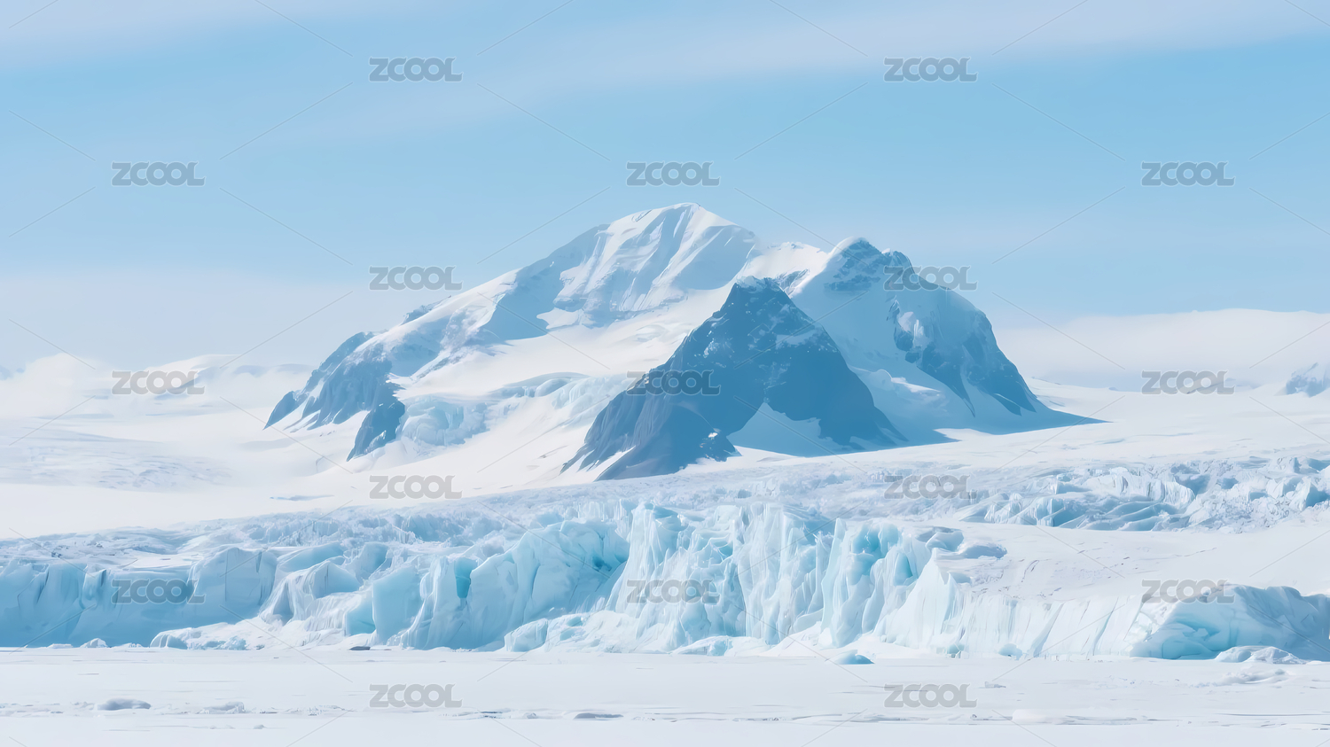 南冰洋冰川航道边的雪山冰川
