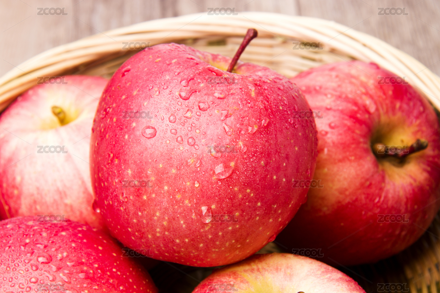 放在木纹背景上的洛川红富士苹果