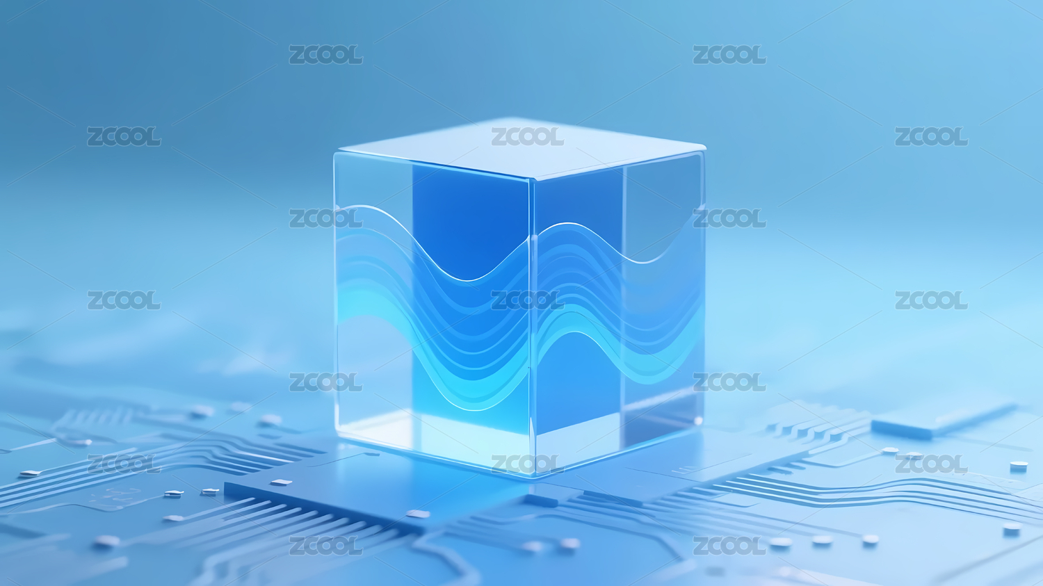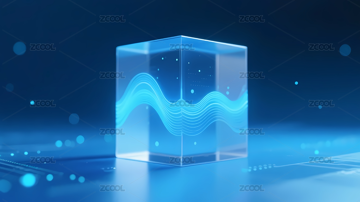 透明立方体蓝色波纹