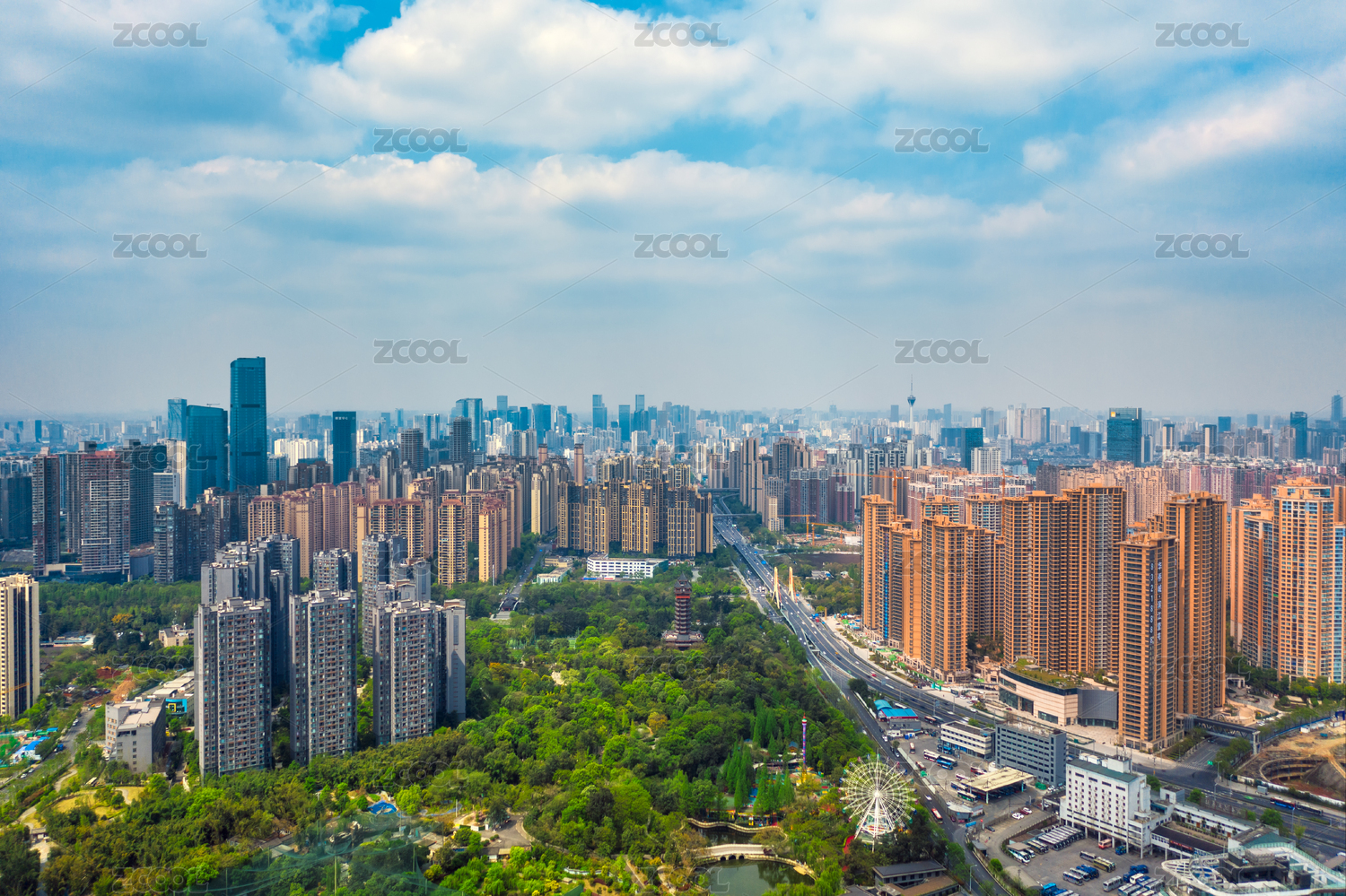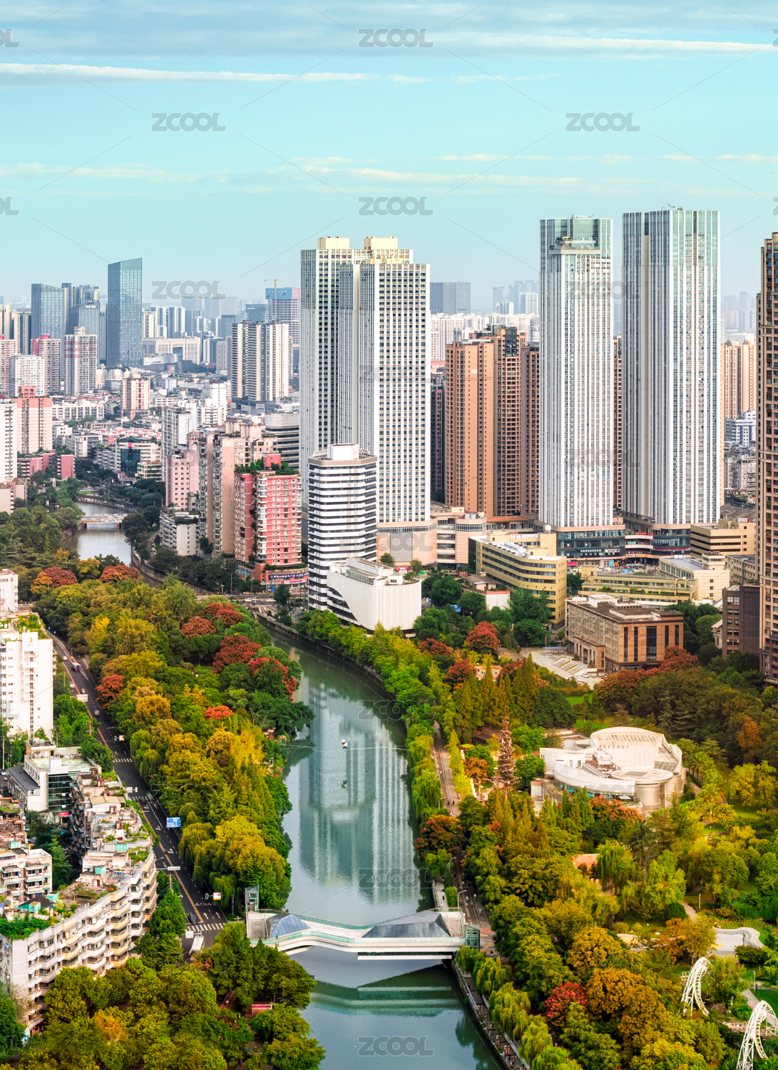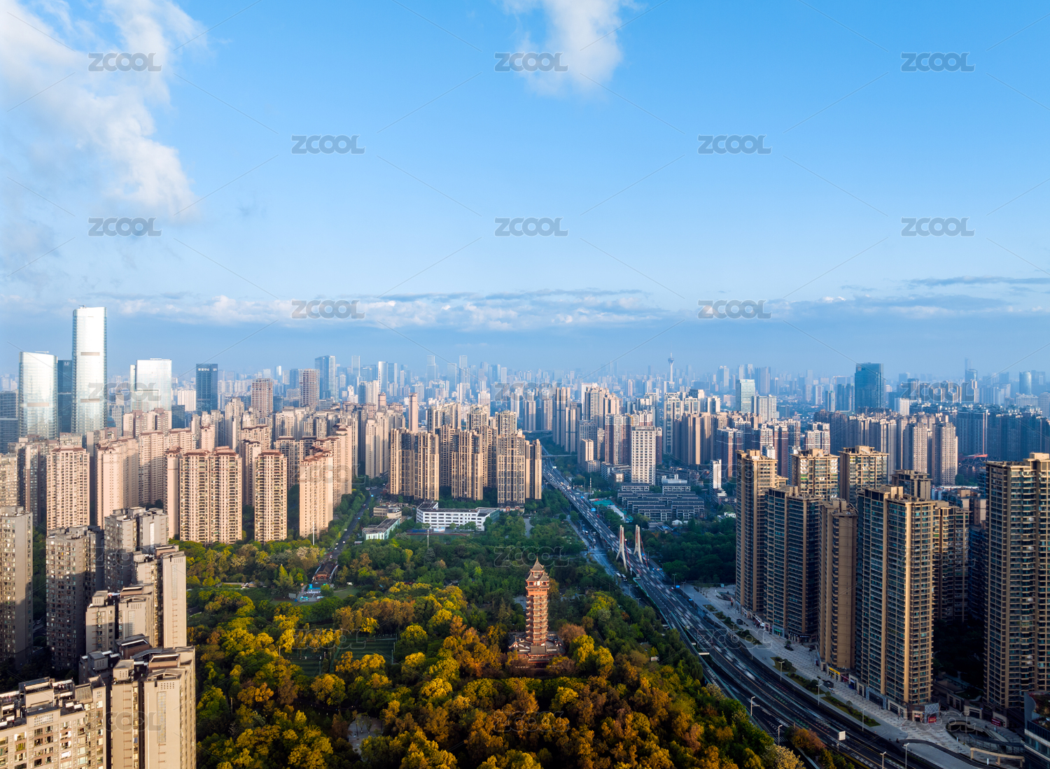中国四川成都城市天际线航拍图