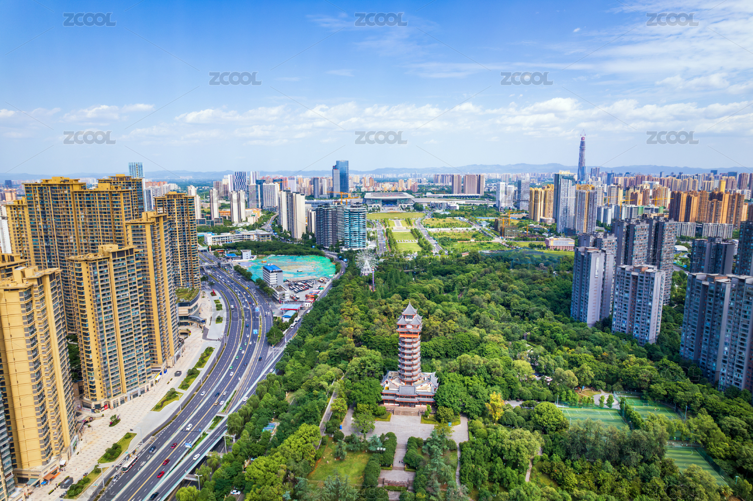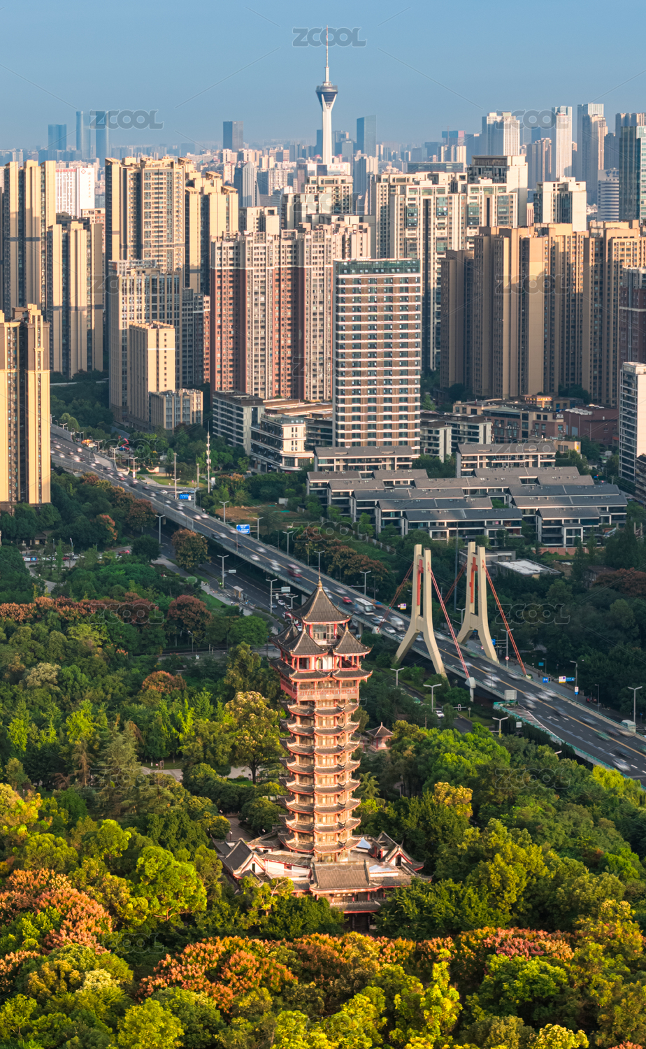 中国四川成都塔子山公园航拍图