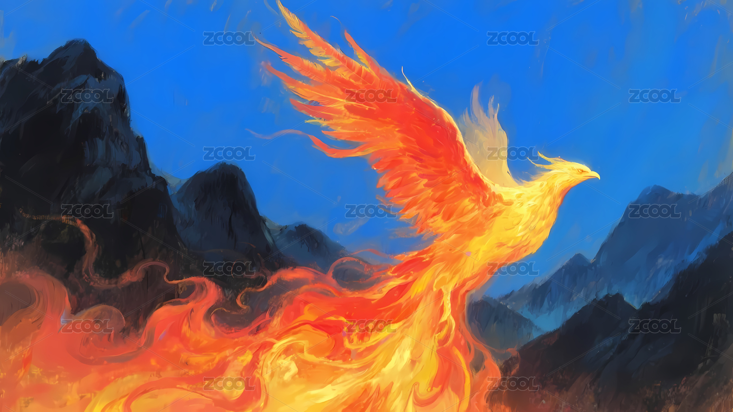 气势磅礴的火凤凰浴火重生插画