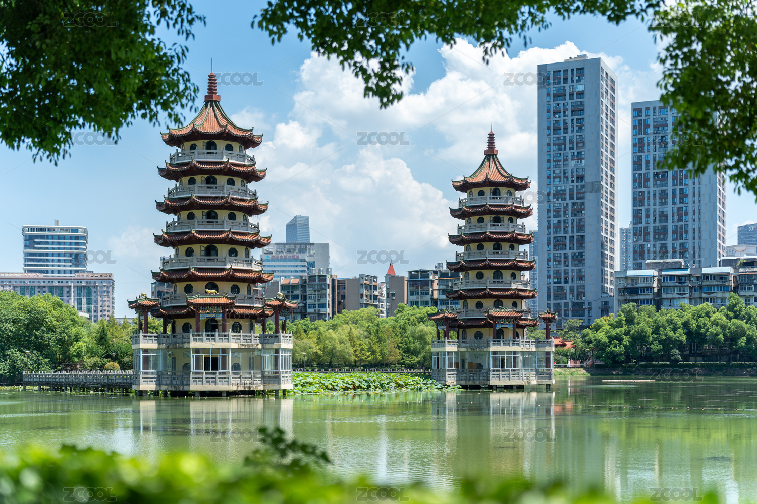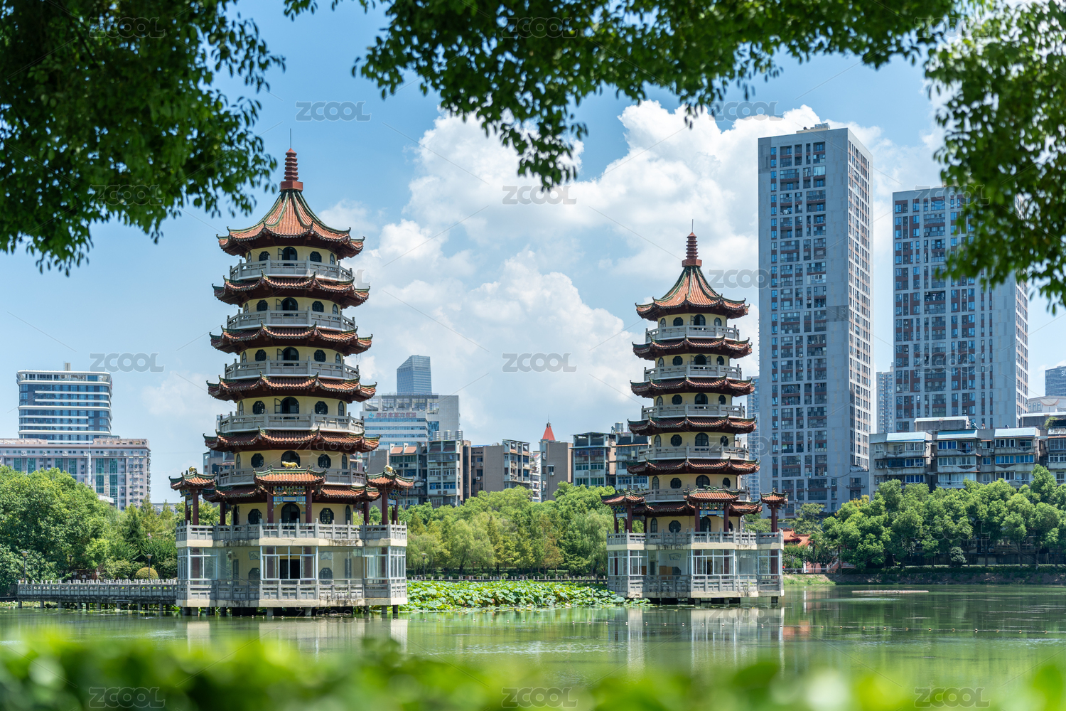 武汉宝岛公园城市中的古韵双塔