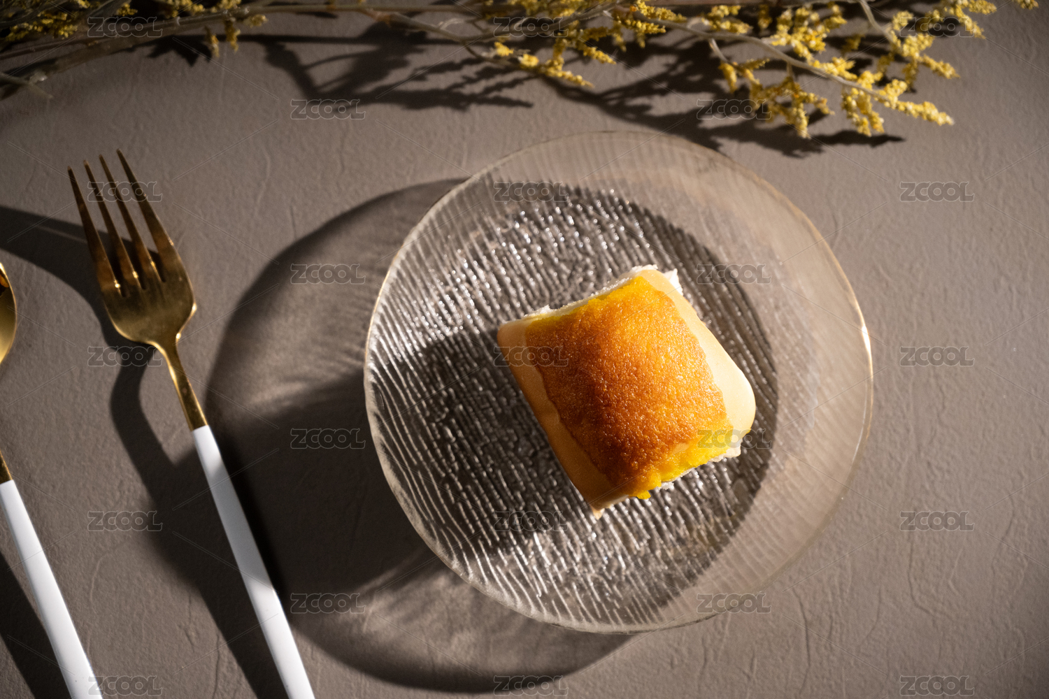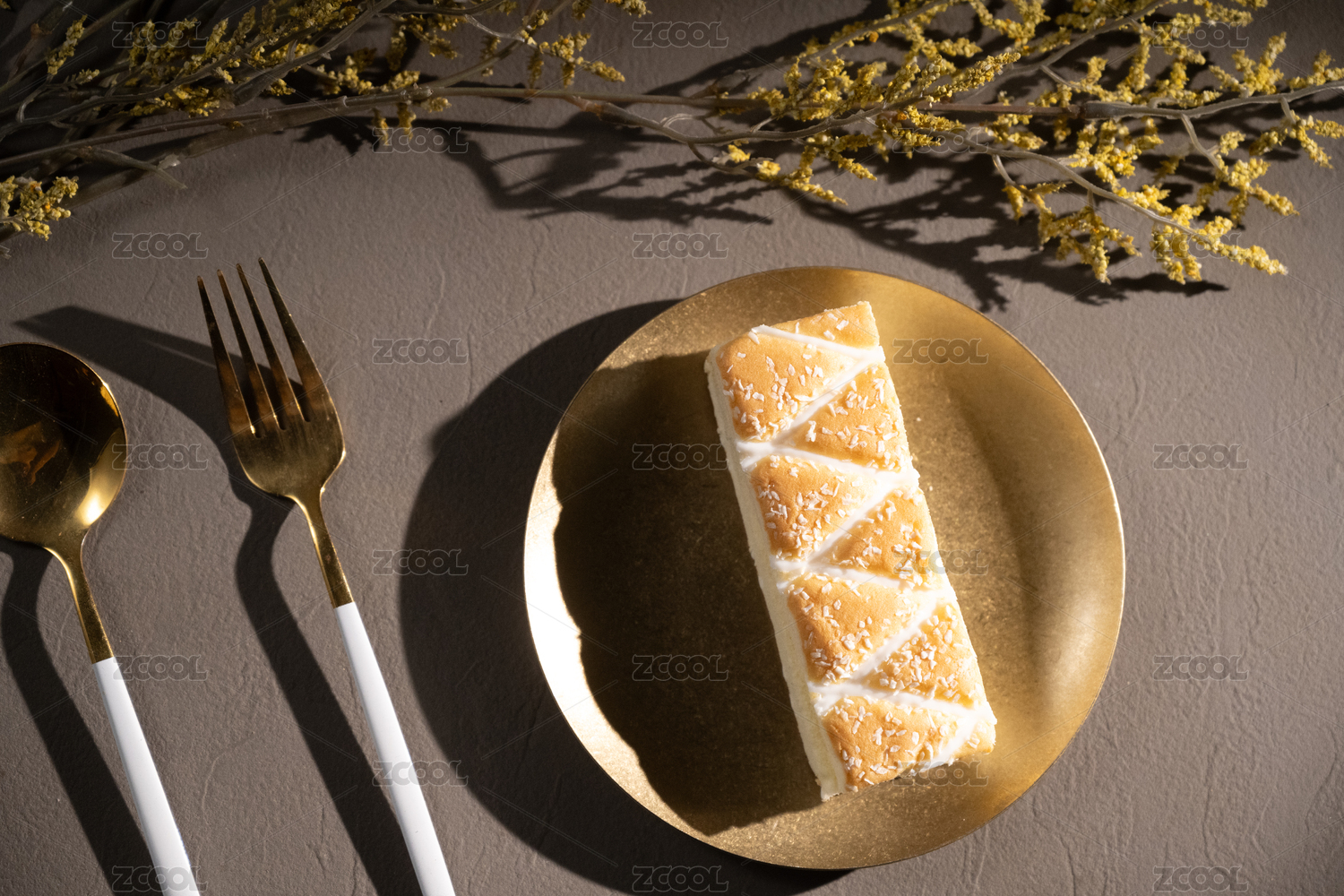 桌面上的盘子里的美味可口的椰蓉蛋糕