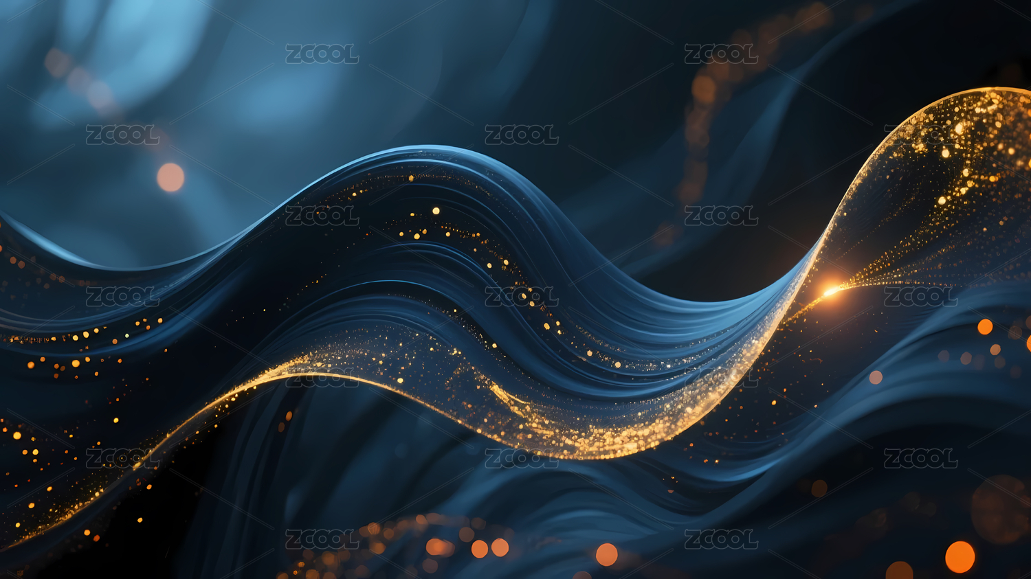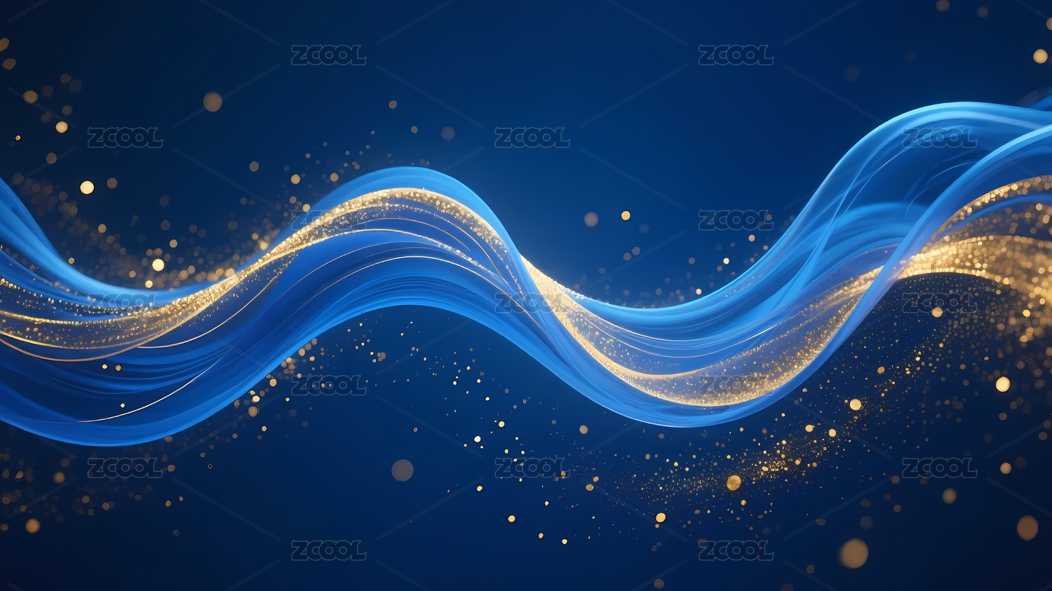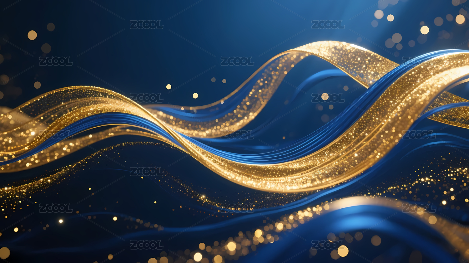 蓝金波浪与深蓝背景
