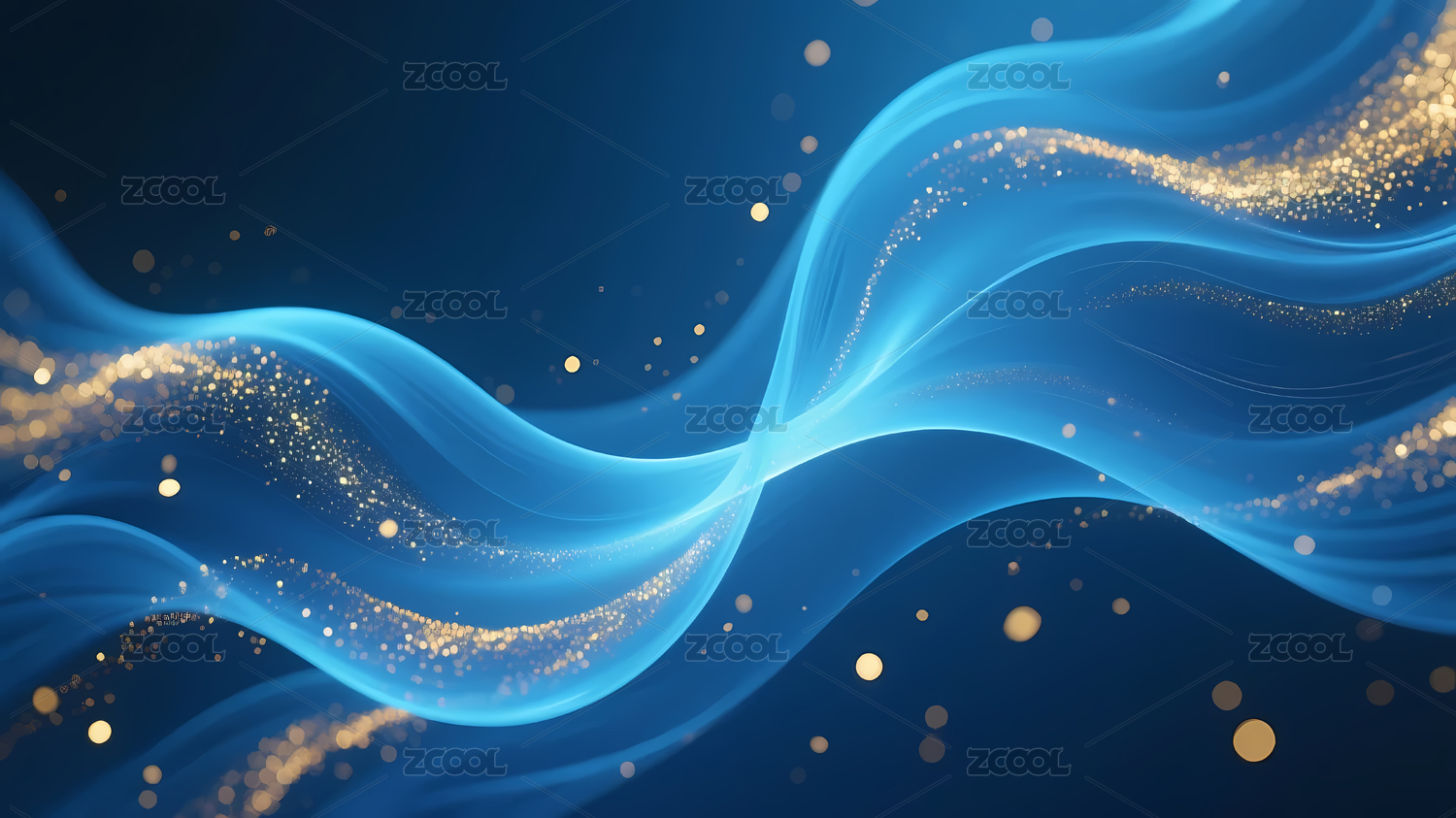 蓝金波浪线与微光背景