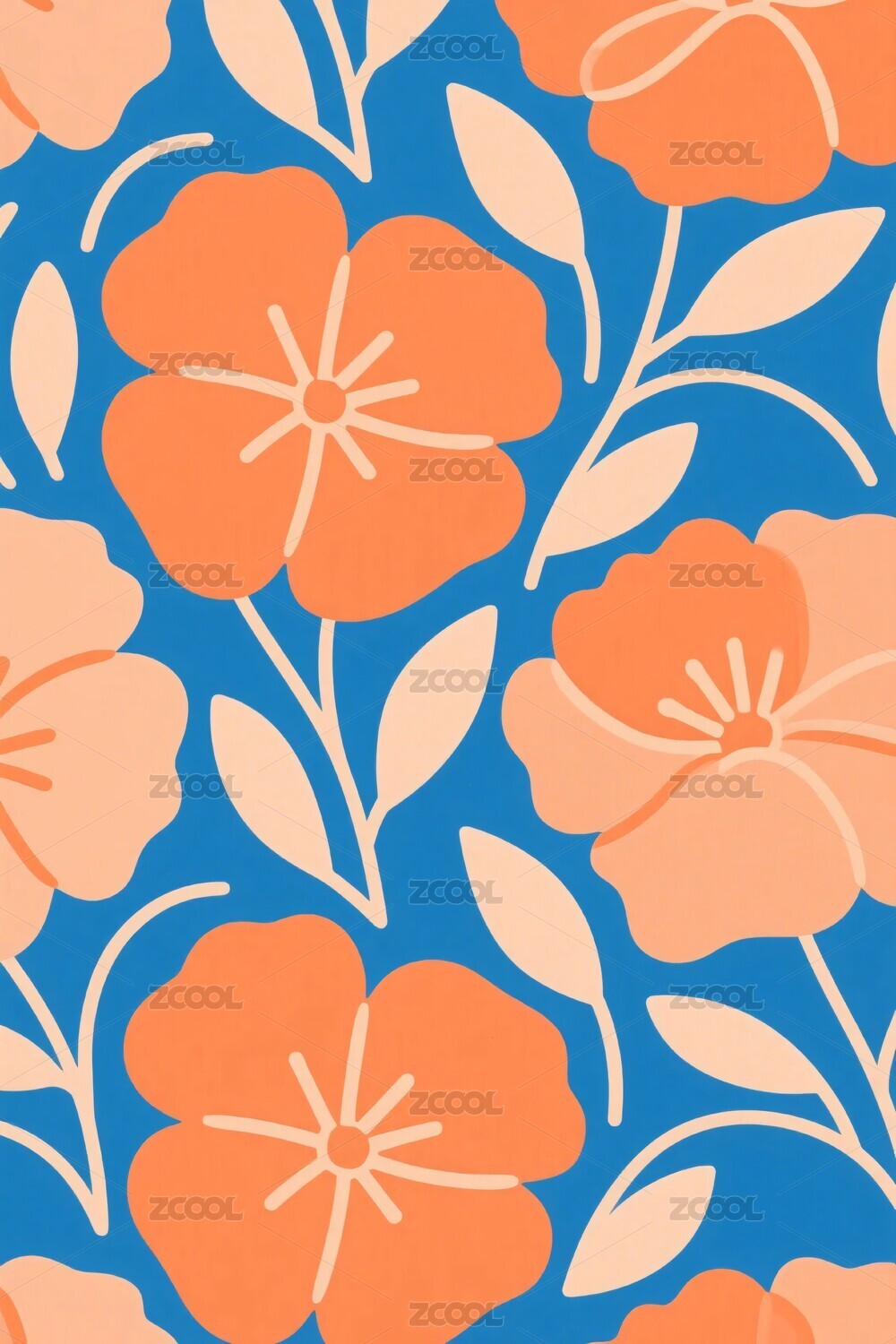 花卉,插画,图案,装饰,背景,蓝色,橙色,花朵,植物,艺术