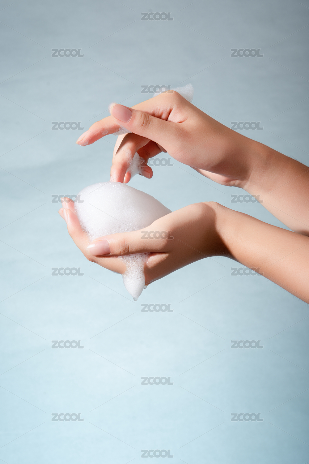 女性双手涂抹泡沫护肤画面