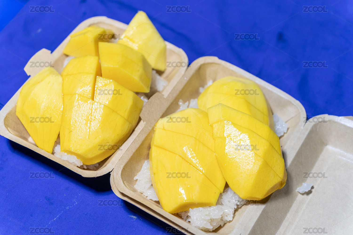 外卖盒里新鲜的泰式芒果糯米饭