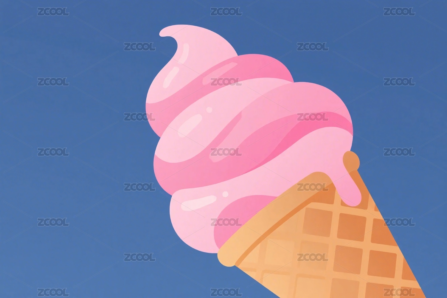 冰淇淋,蛋筒,奶油,蓝莓,插画,甜点,美食,简约,平面设计,复古