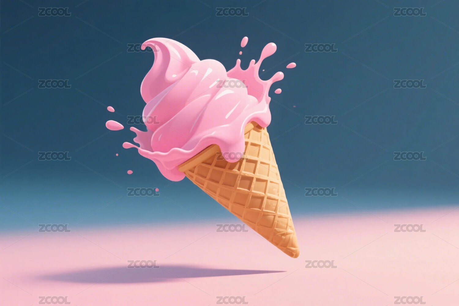 粉红色甜蜜卡通3D冰淇淋雪糕插画