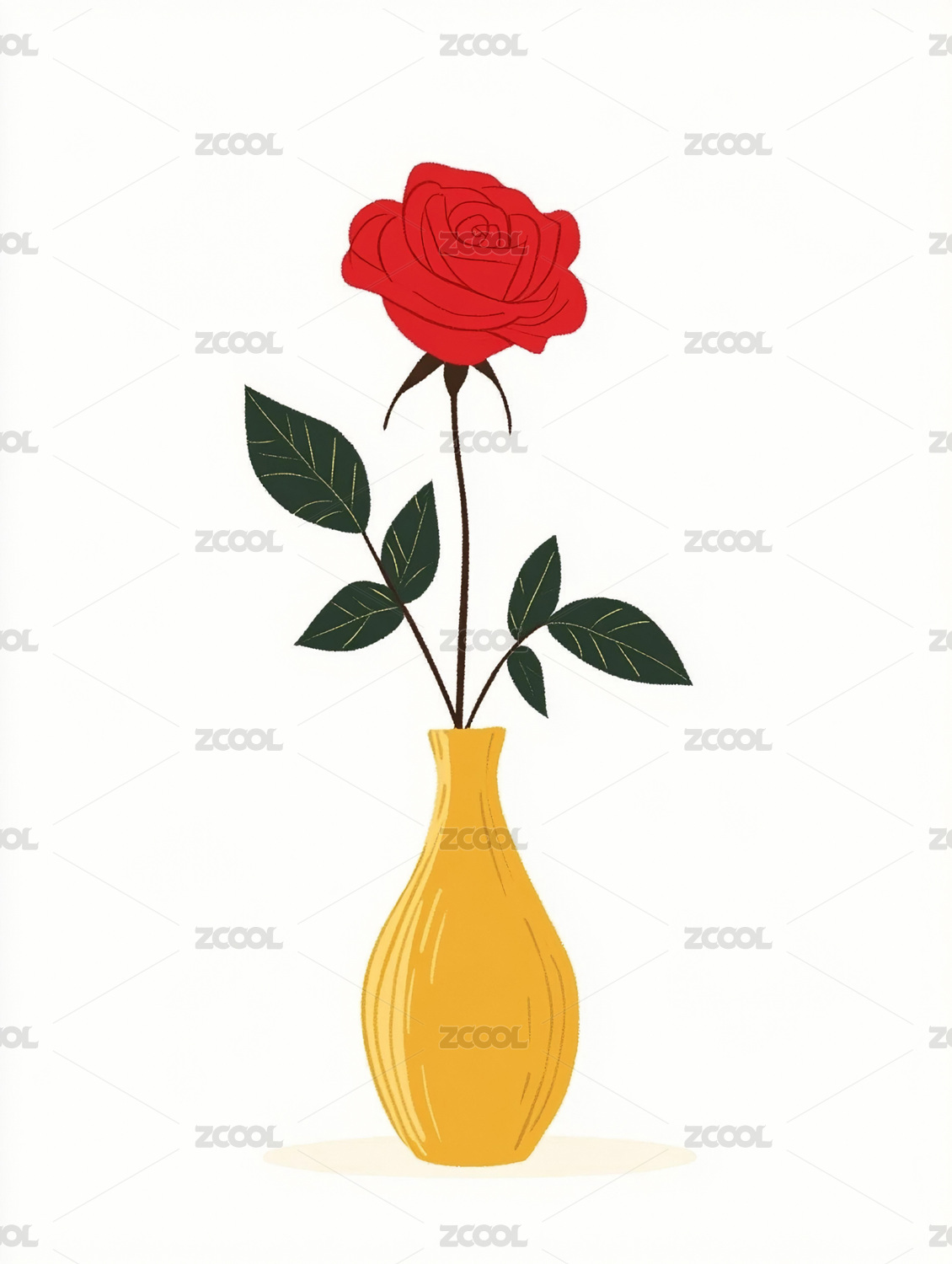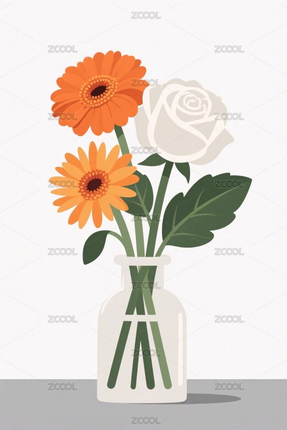 橙色玫瑰,花瓶,插画,花卉,装饰,平面设计,卡通风,插画风格,艺术,装饰画