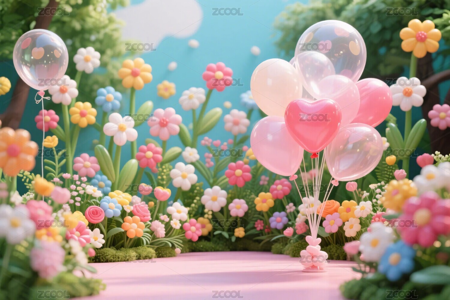 彩色气球花卉装饰场景