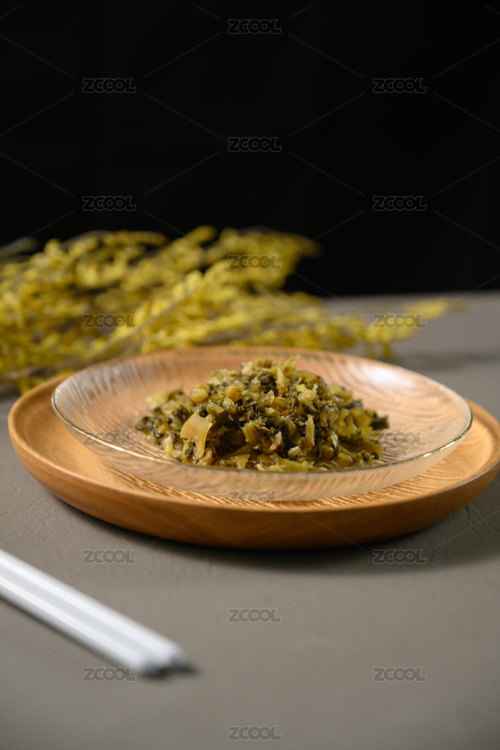 桌面上的盘子里的美味可口的宁波雪菜