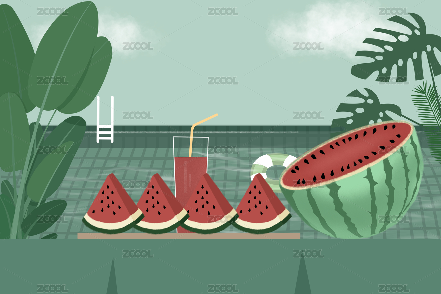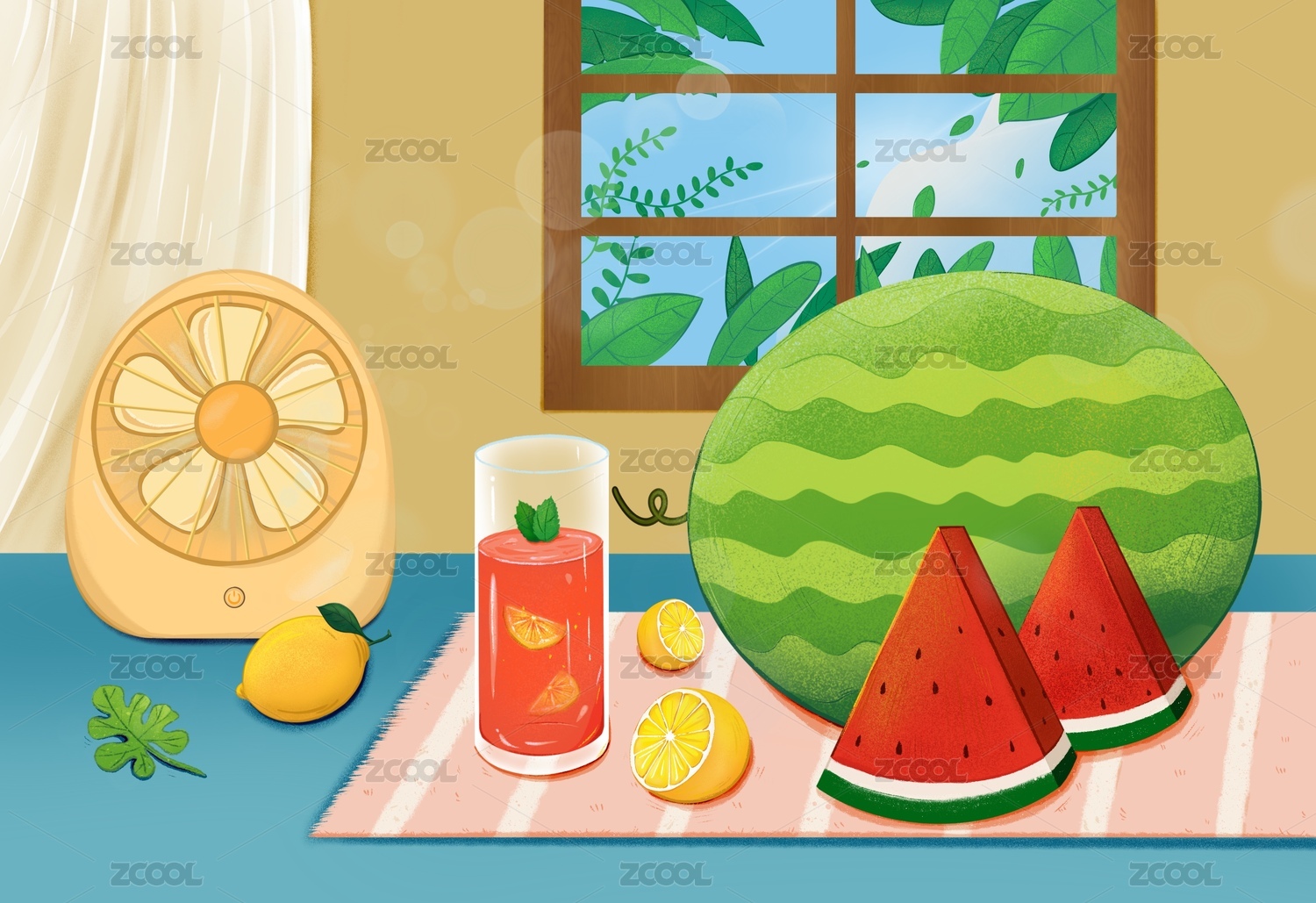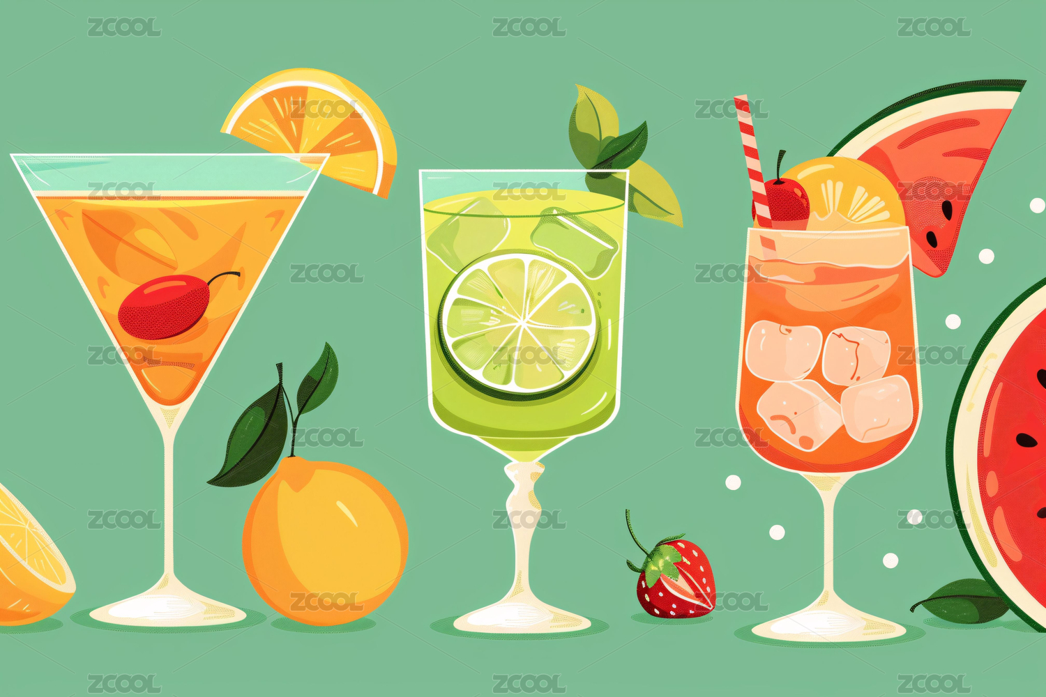 夏日清凉饮品与水果插画
