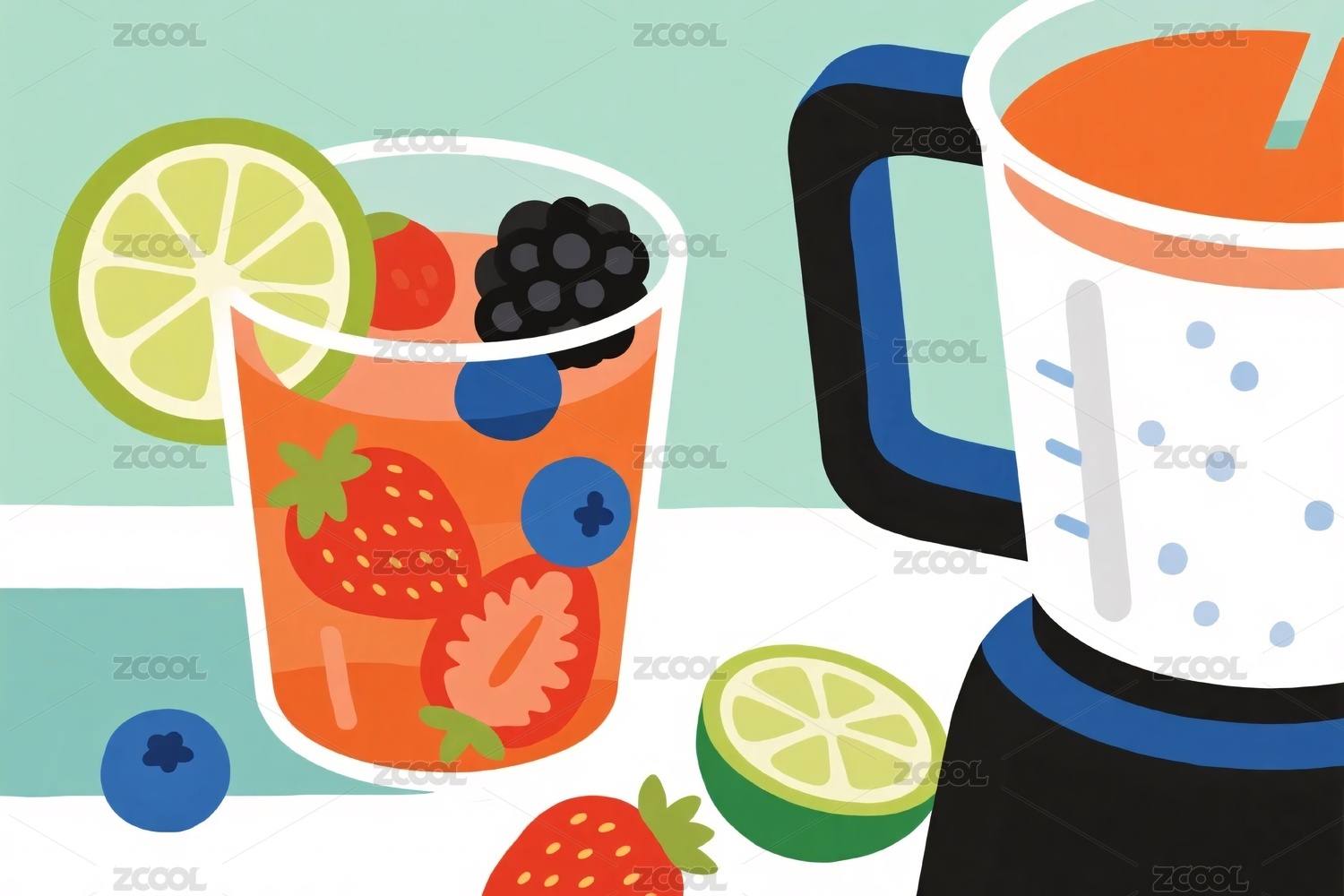清新水果饮品插画