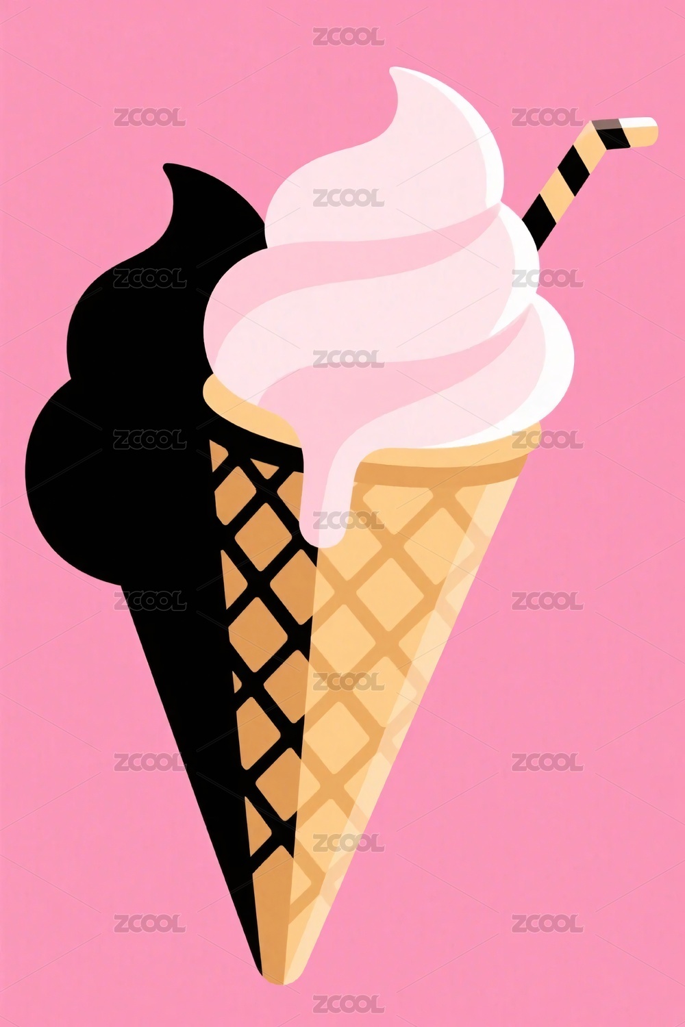 粉色冰淇淋蛋筒插画