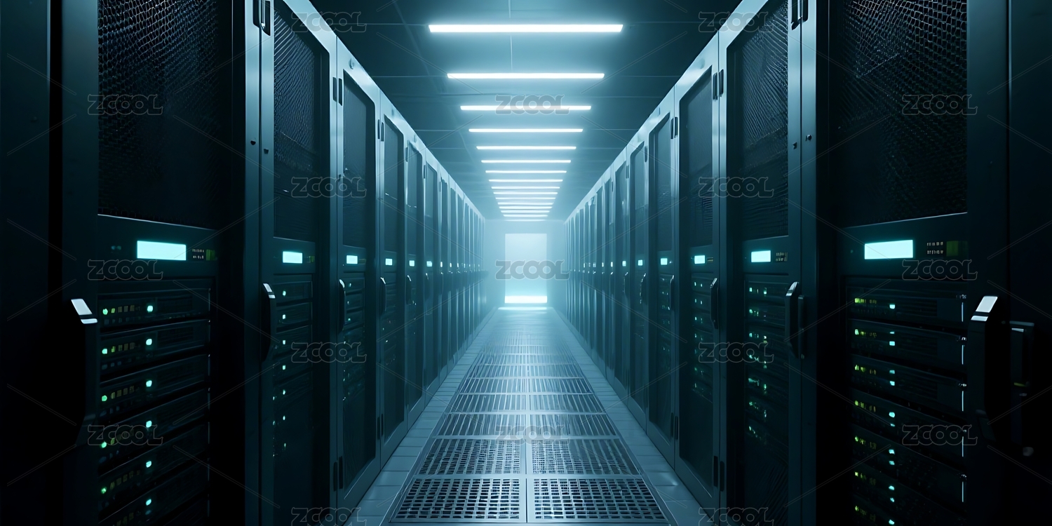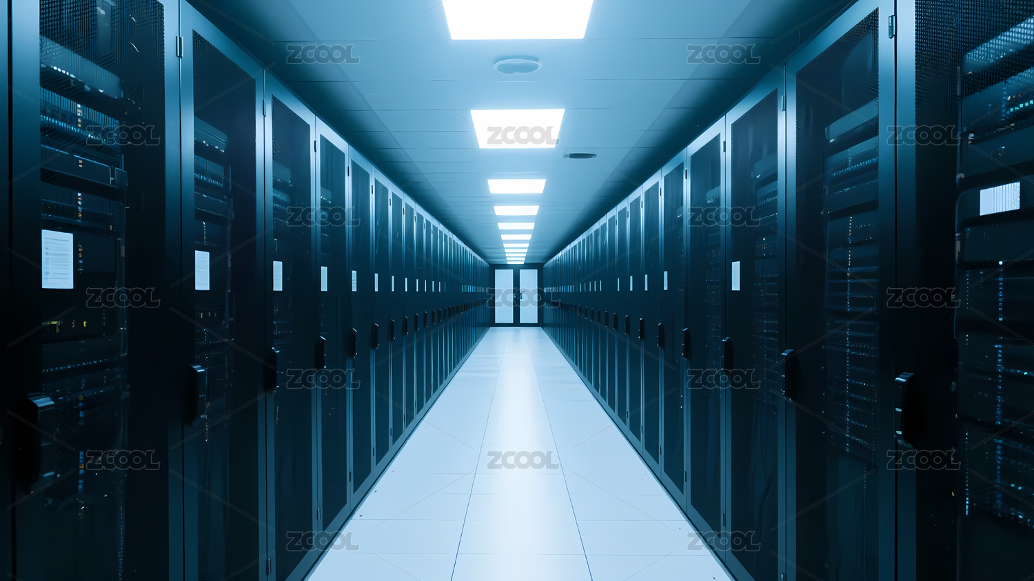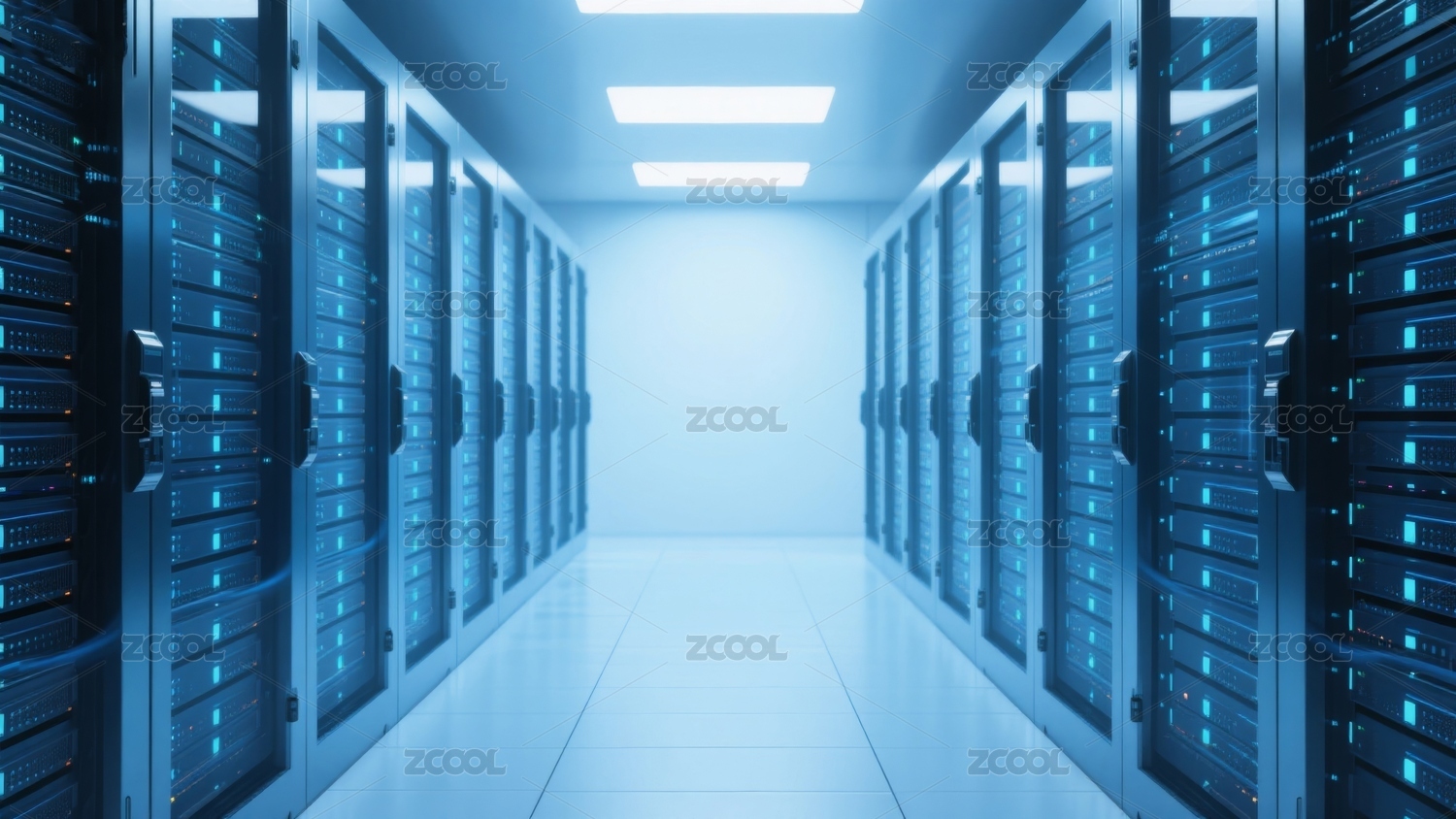 蓝色,科技,背景,白色,灯光,简洁,服务器,机柜,走廊,排列
