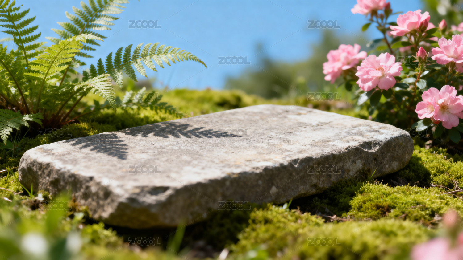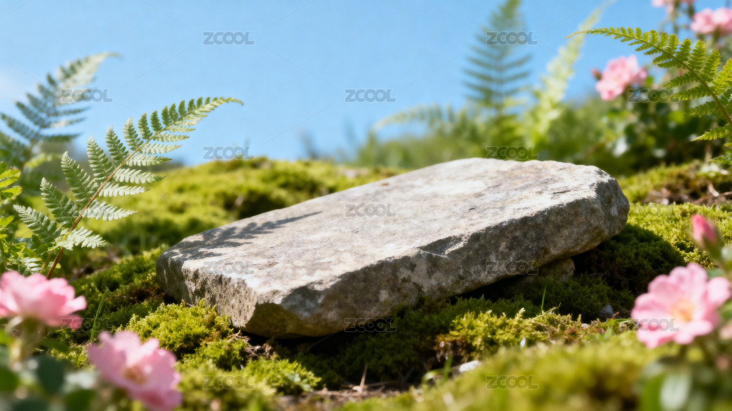 自然石台与花卉背景