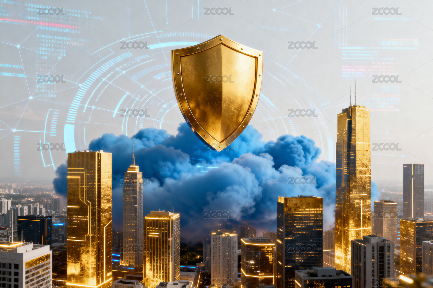 蓝金色商务科技互联网通讯数据防护建筑背景