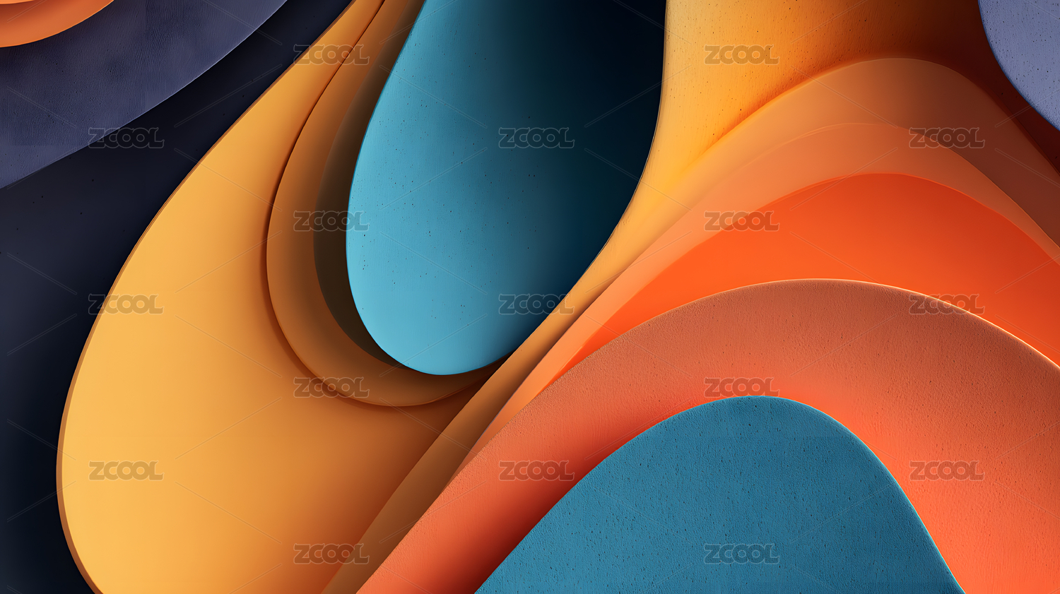 蓝橙渐变波浪抽象图案