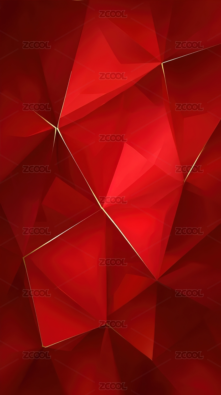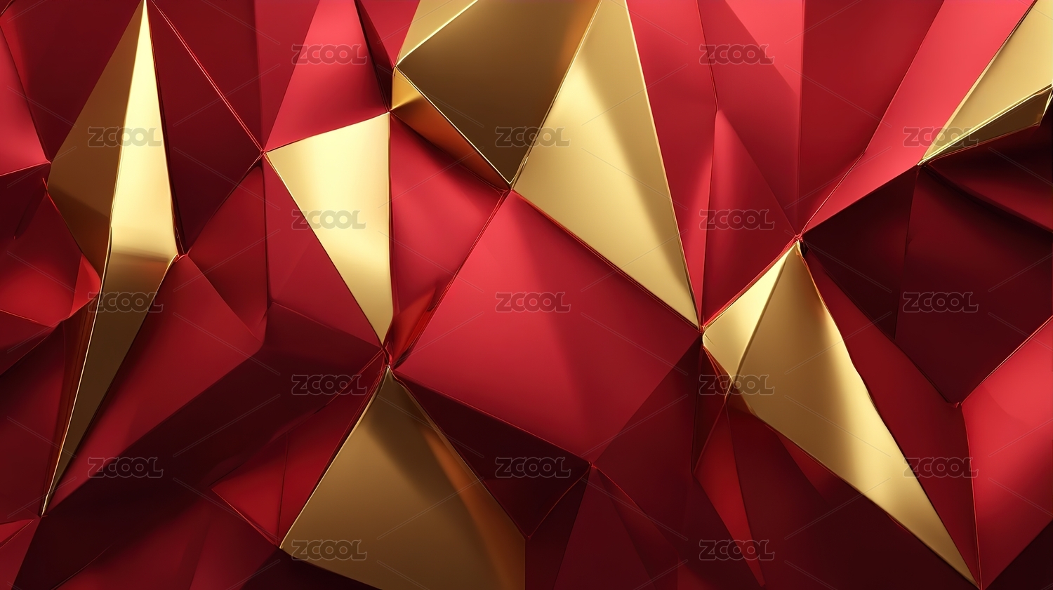 红色几何拼贴背景金色线条点缀