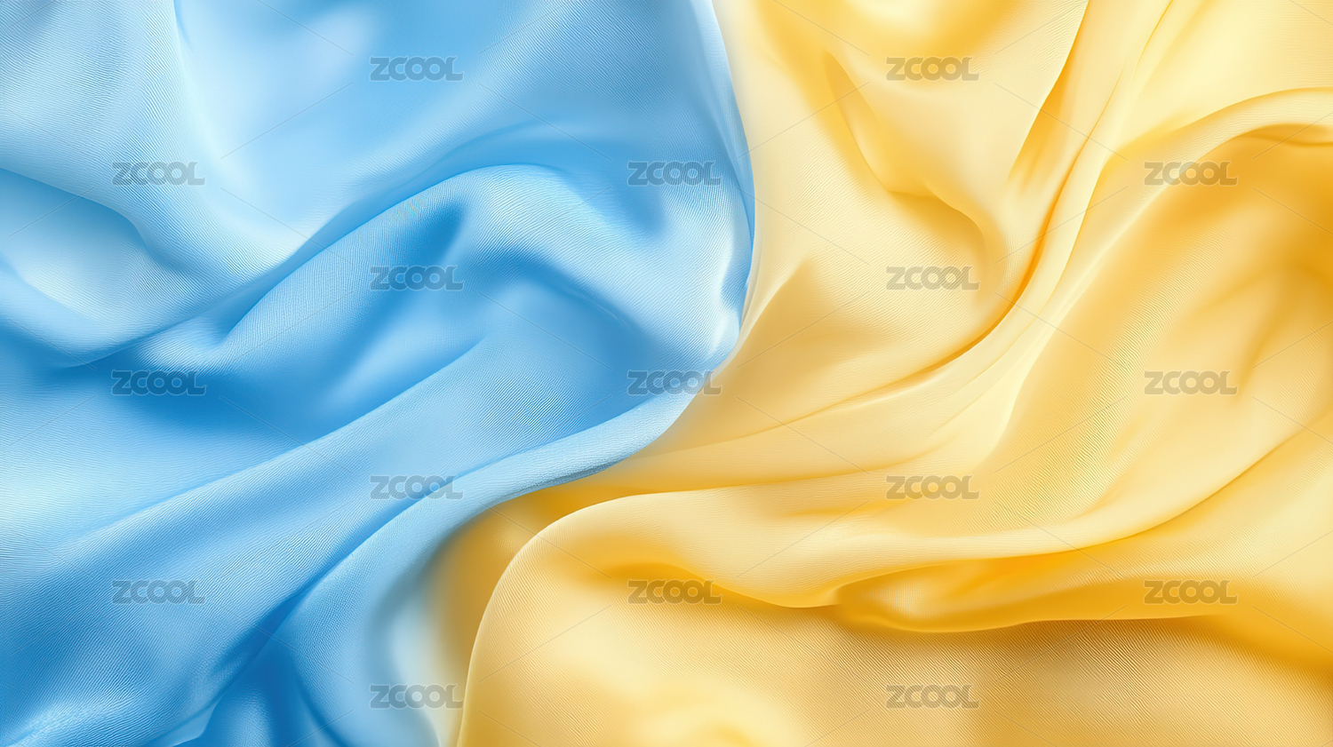 蓝黄交织的丝滑布料