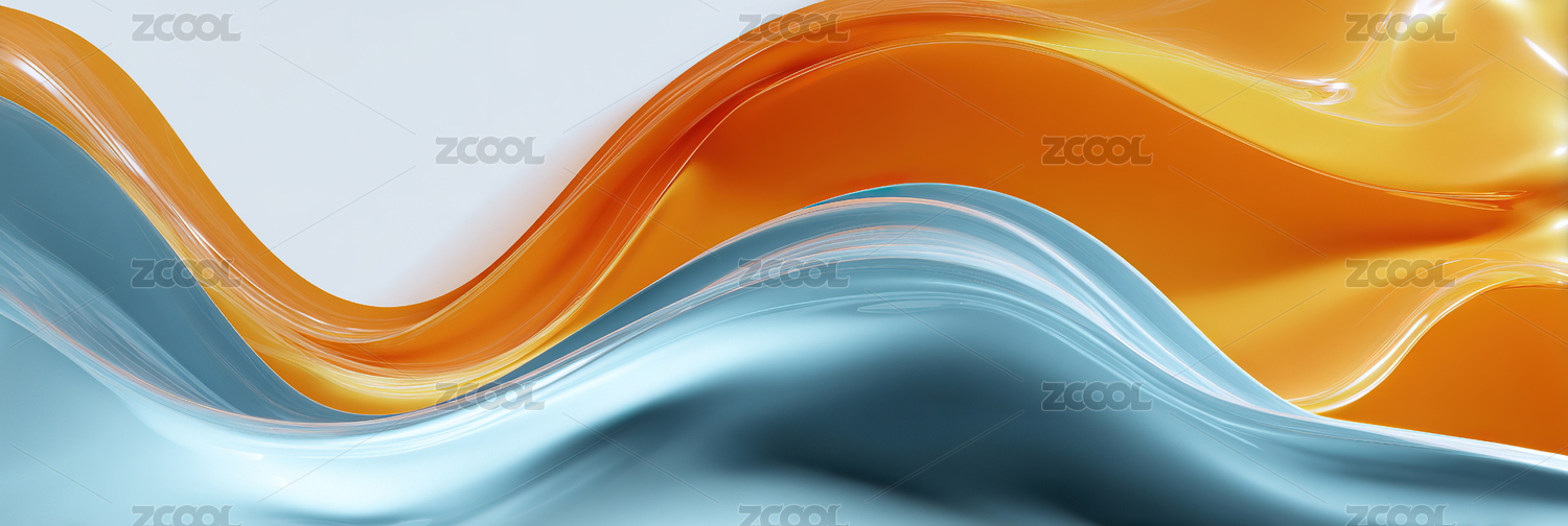 橙色波浪曲线与蓝色渐变背景的视觉冲击