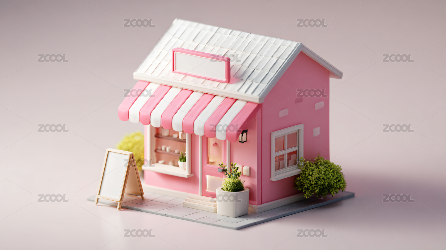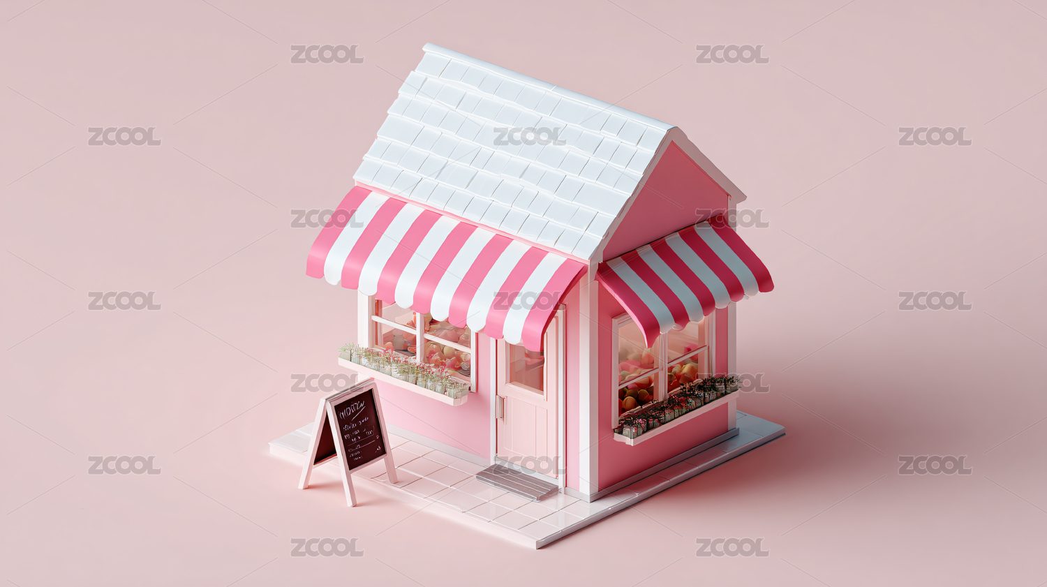 粉色小店铺模型图