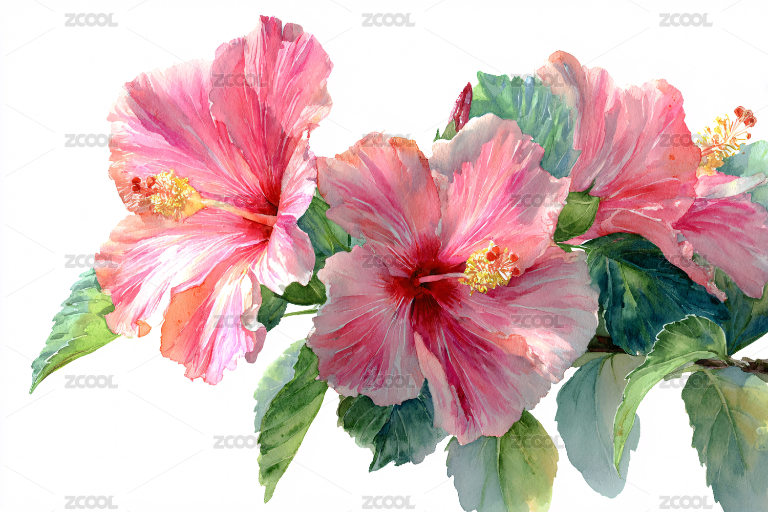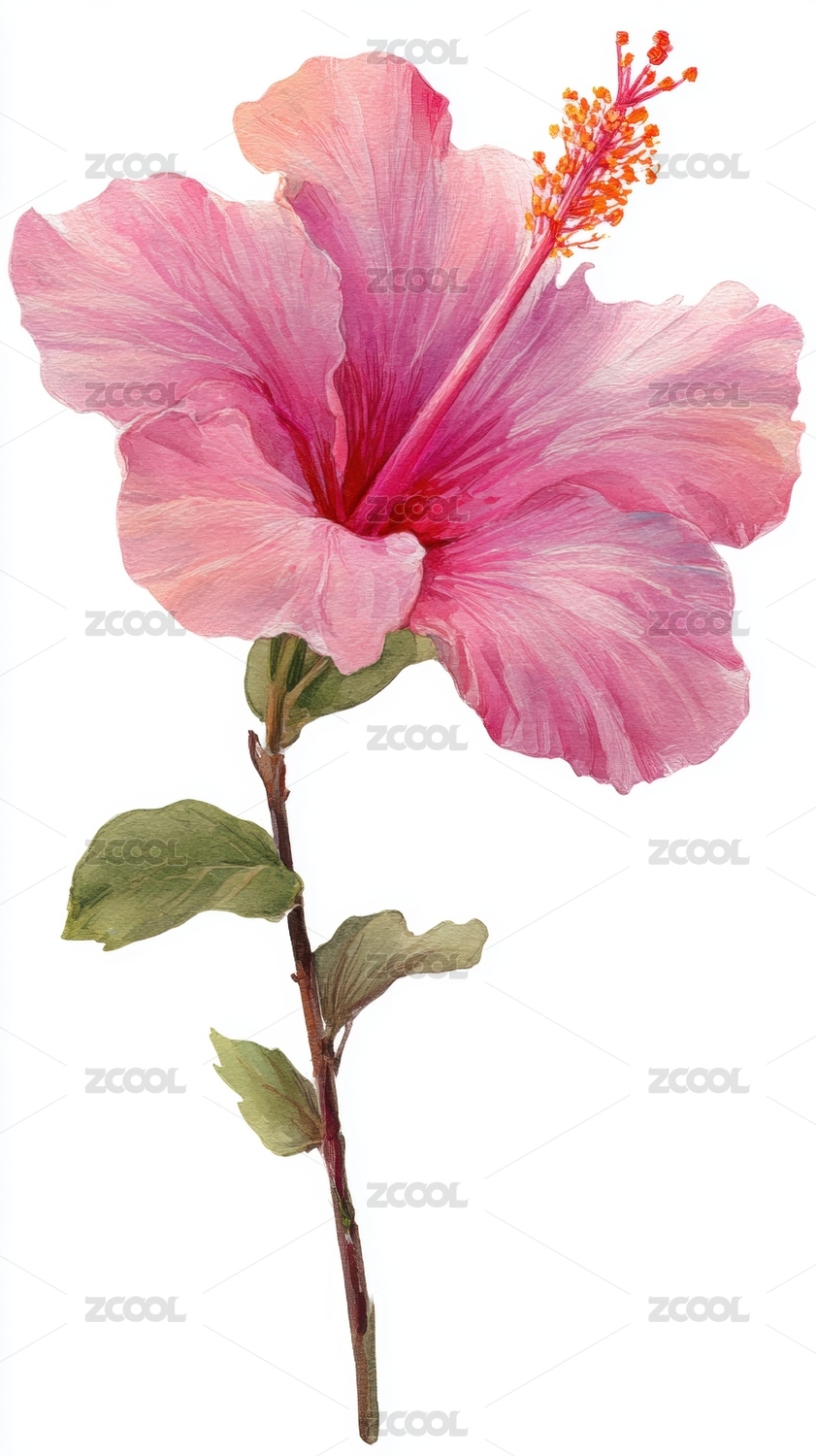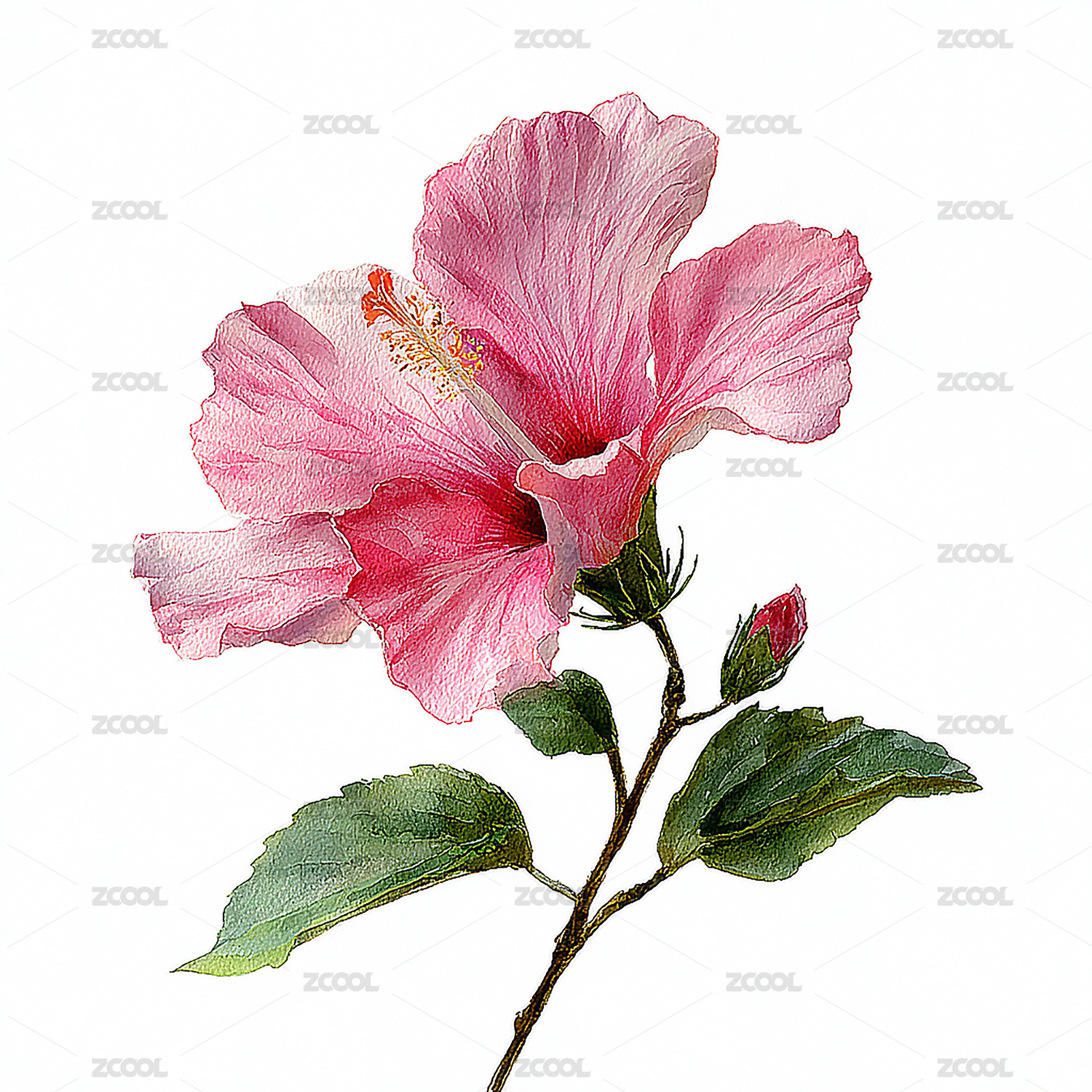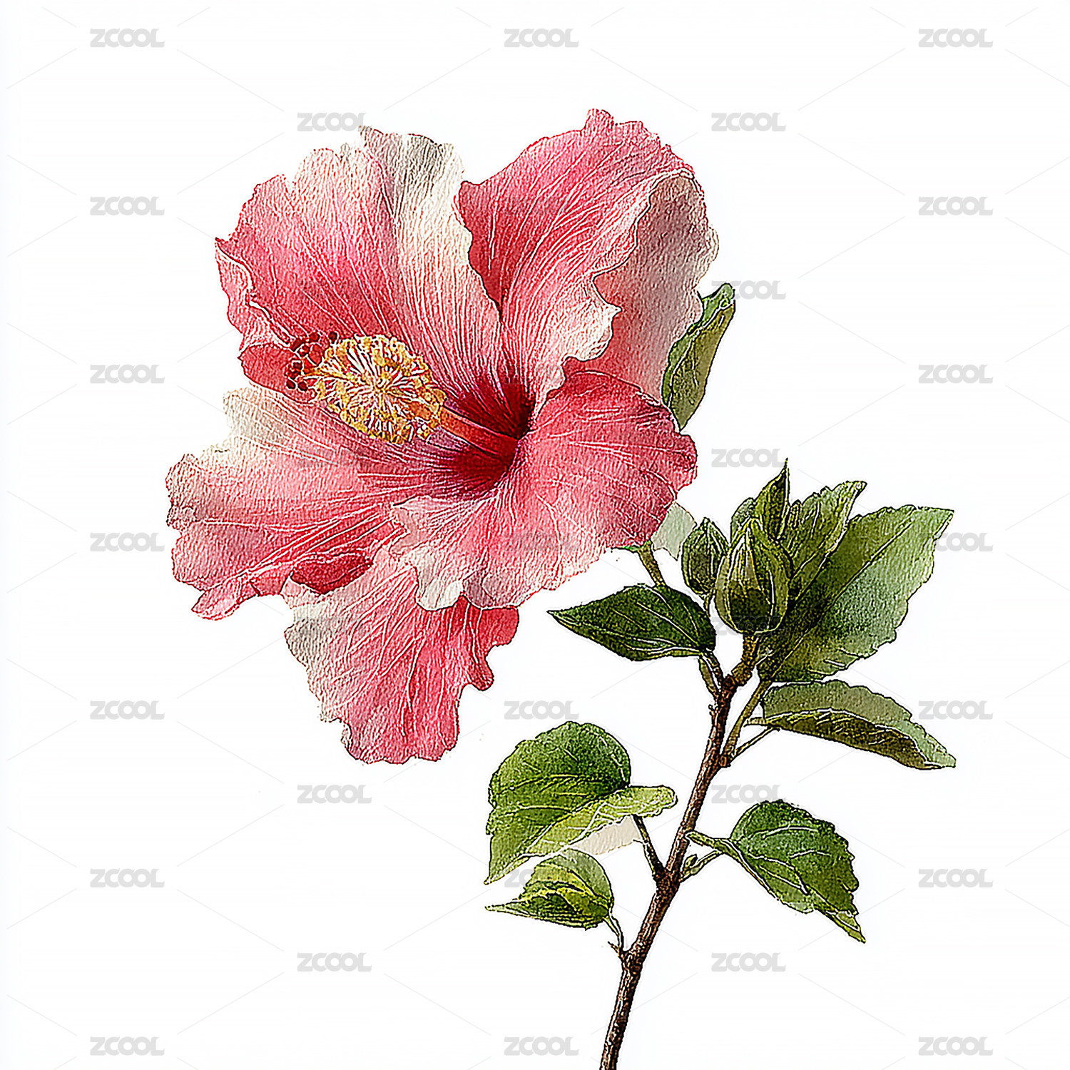 扶桑花,花卉,水彩,绘画,艺术,花瓣,清新,淡雅,花蕊,绽放